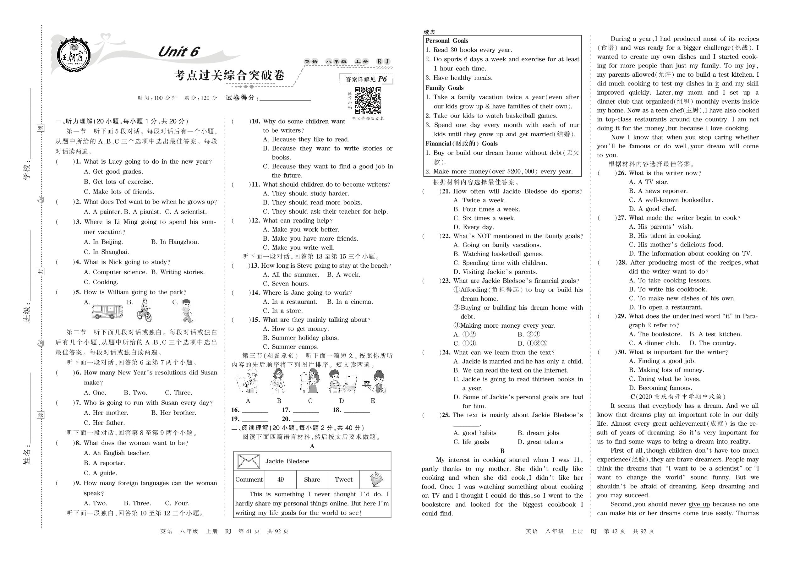 2021上册八年级英语人教版 Unit 6 考点过关综合突破卷_R211231111652896