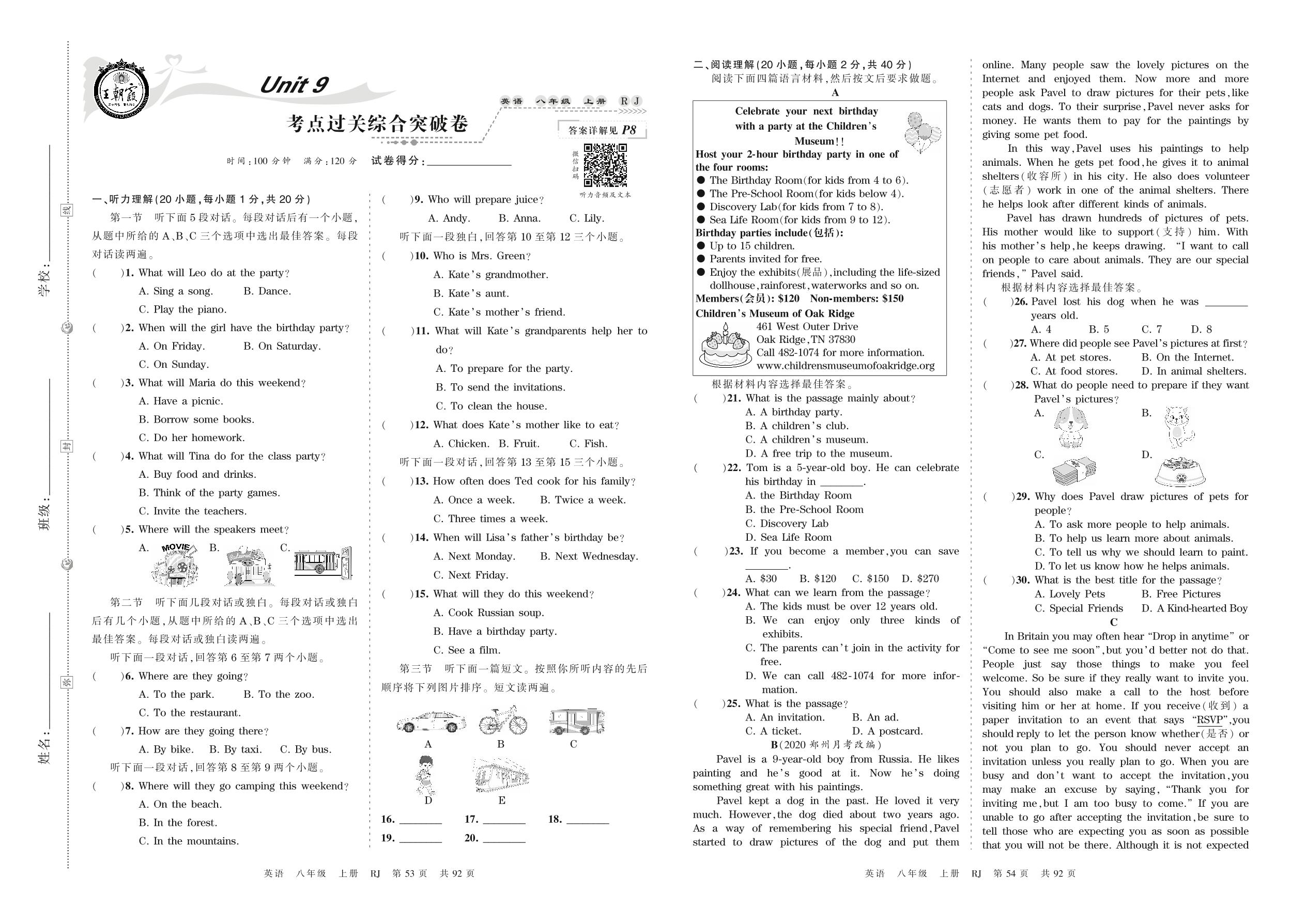 2021上册八年级英语人教版 Unit 9 考点过关综合突破卷_R211231111652066