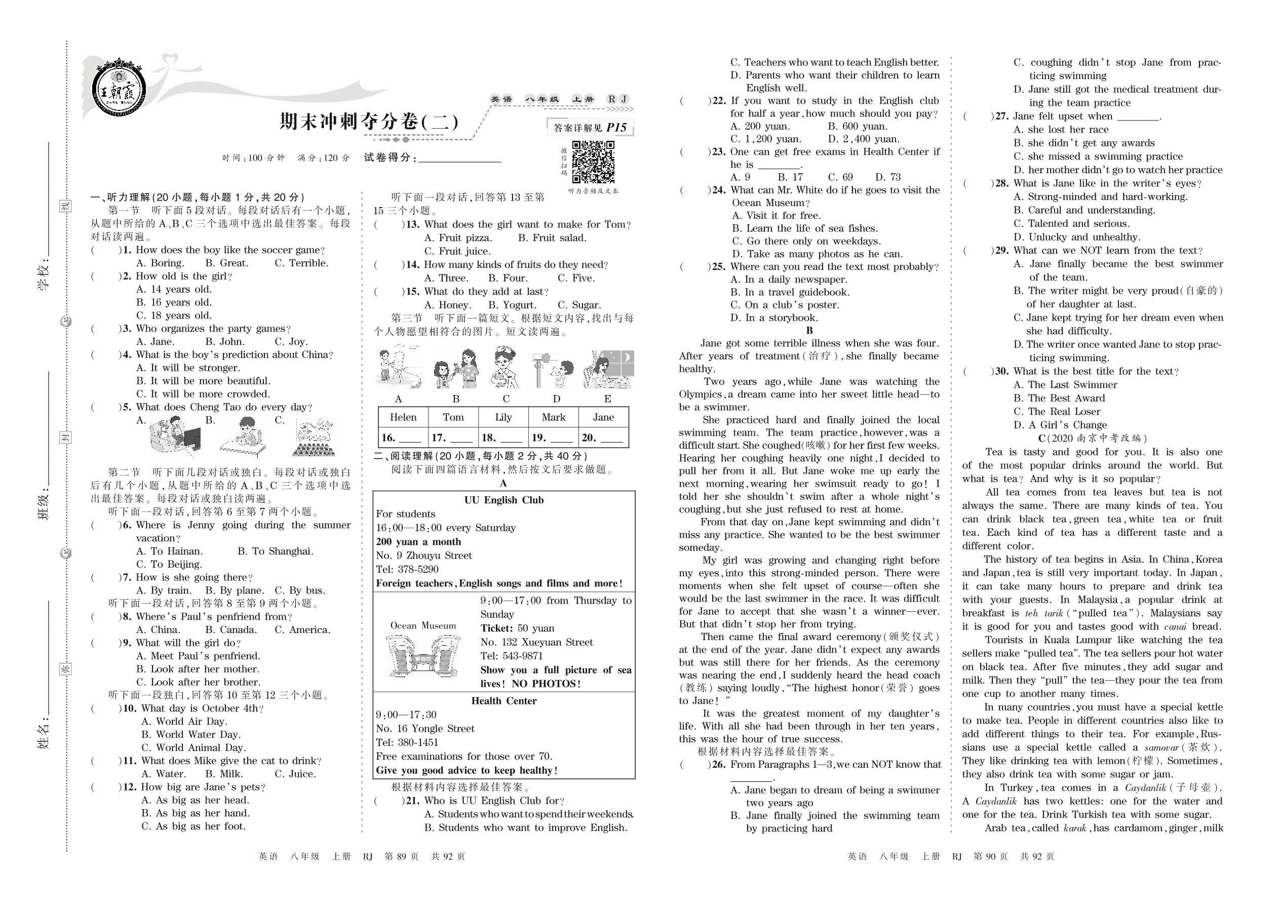 2021上册八年级英语人教版 期末冲刺夺分卷(二)_R211231111654087