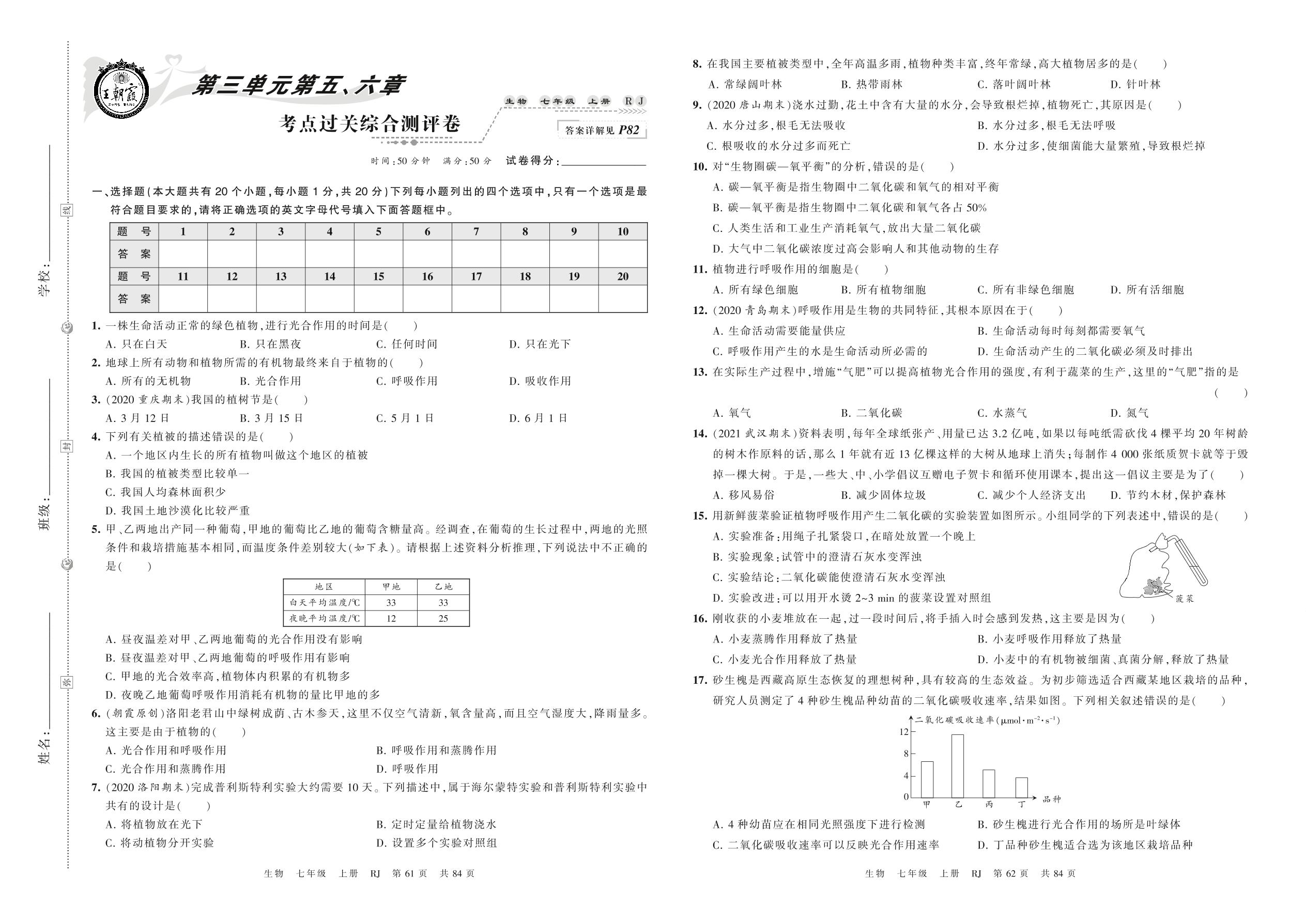 2021上册七年级生物人教版 第三单元第五、六章 考点过关综合测评卷
