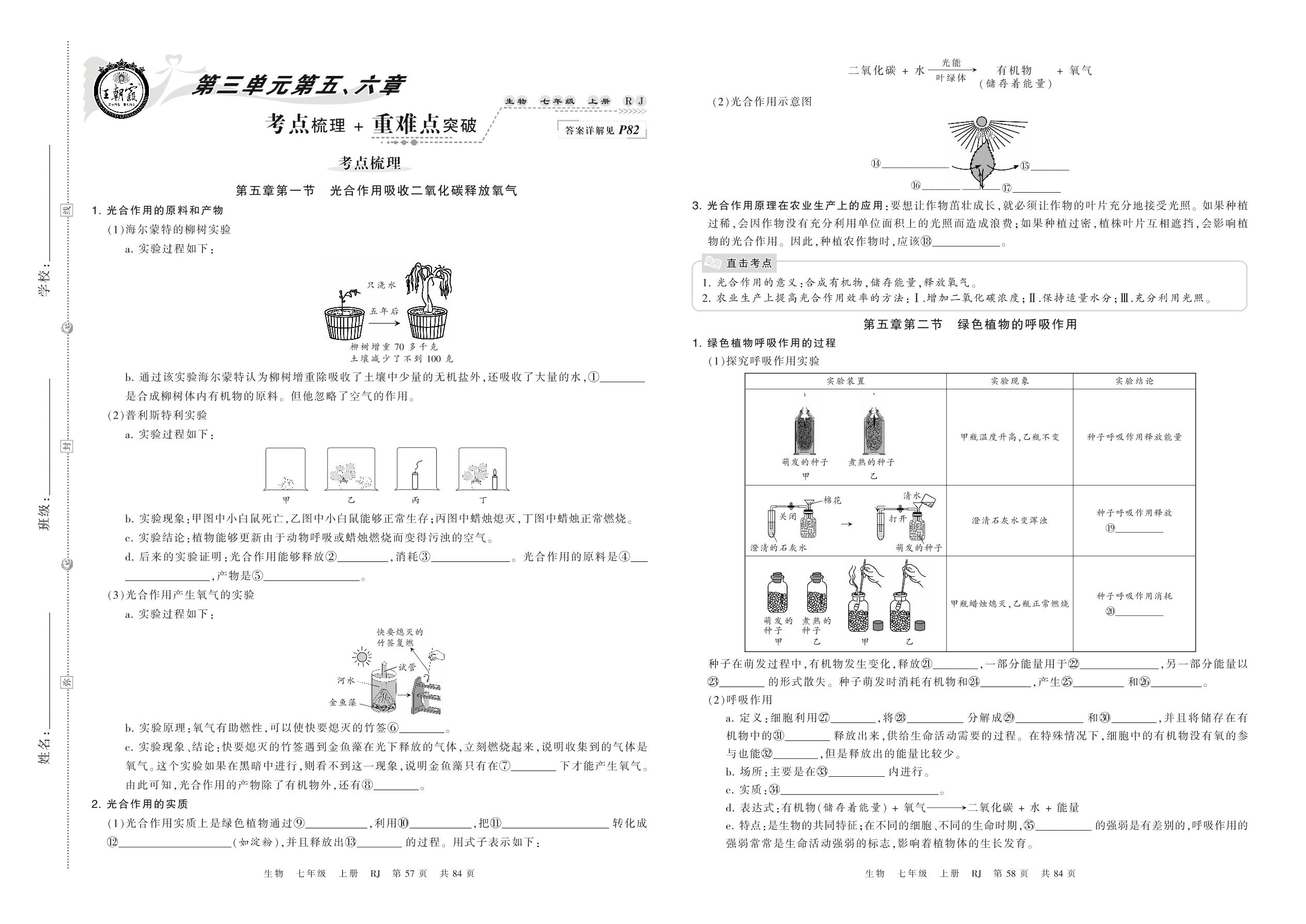 2021上册七年级生物人教版 第三单元第五、六章 考点梳理+重难点突破