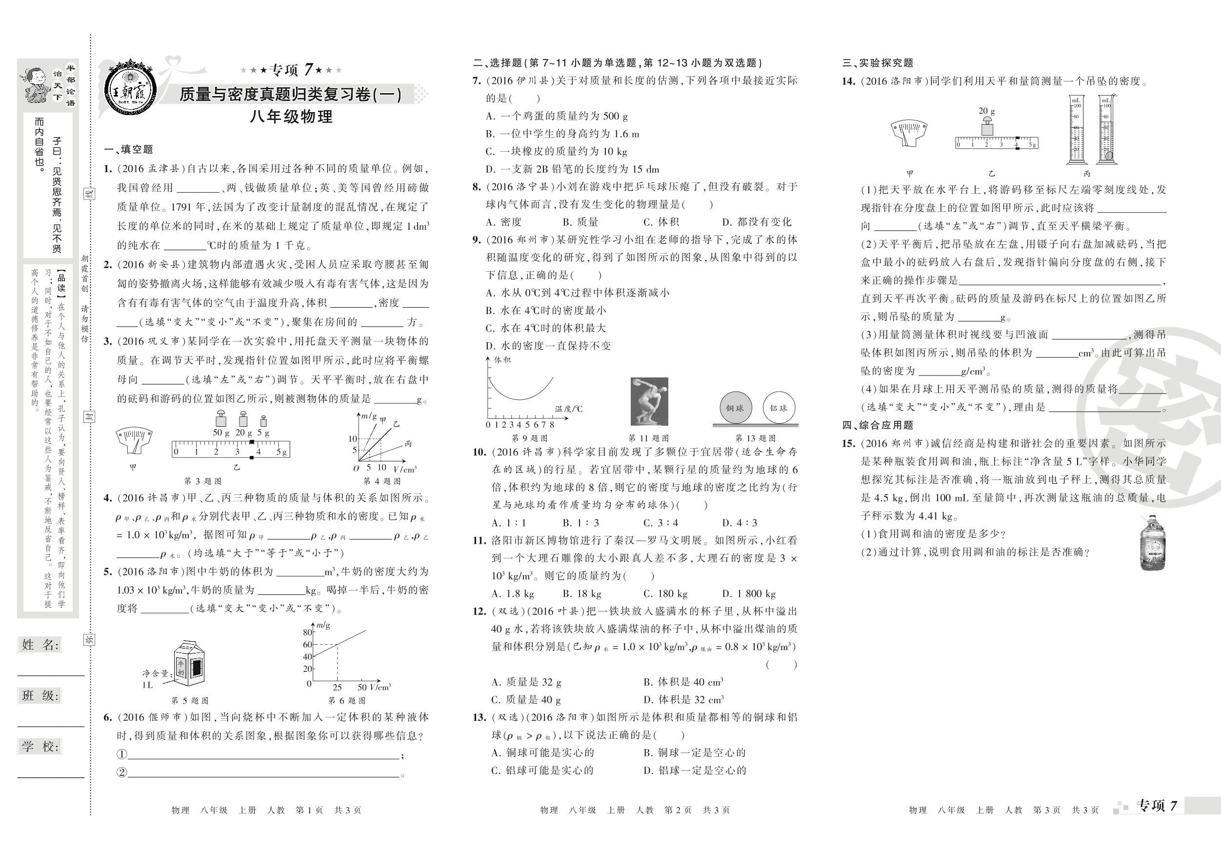 王朝霞期末专项卷——质量与密度(一)(二)真题归类复习卷八年级上册物理(人教版)