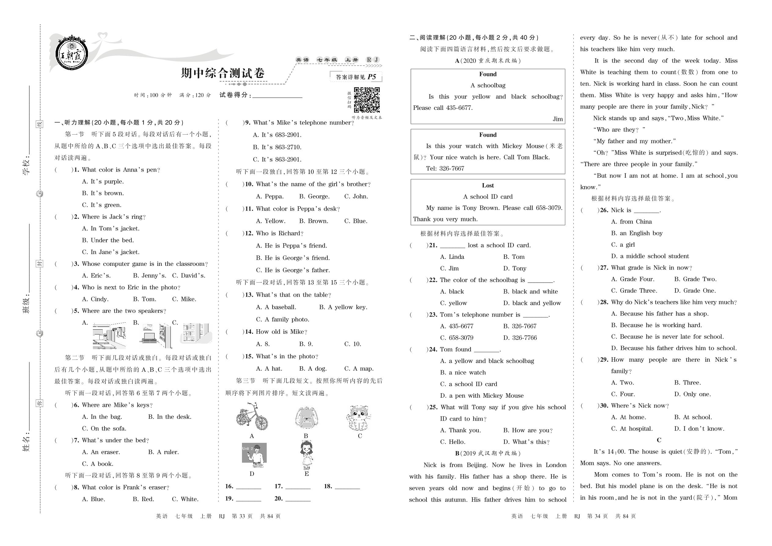 2021上册七年级英语人教版 期中综合测试卷_R211231112905136