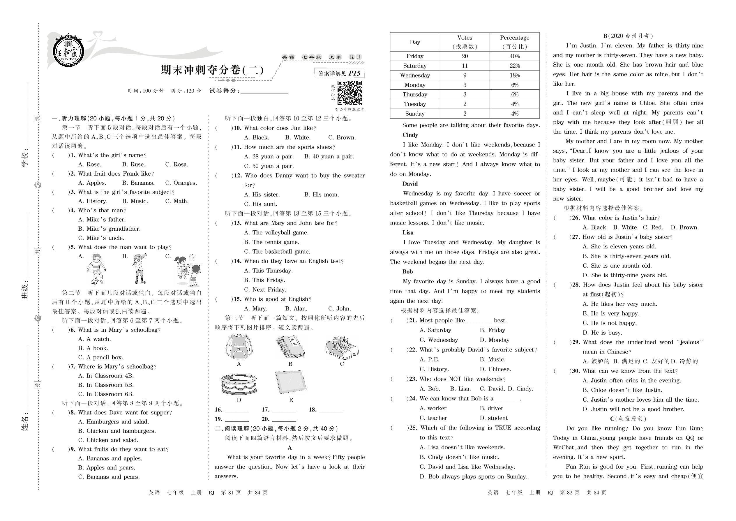 2021上册七年级英语人教版 期末冲刺夺分卷(二)_R211231112906159