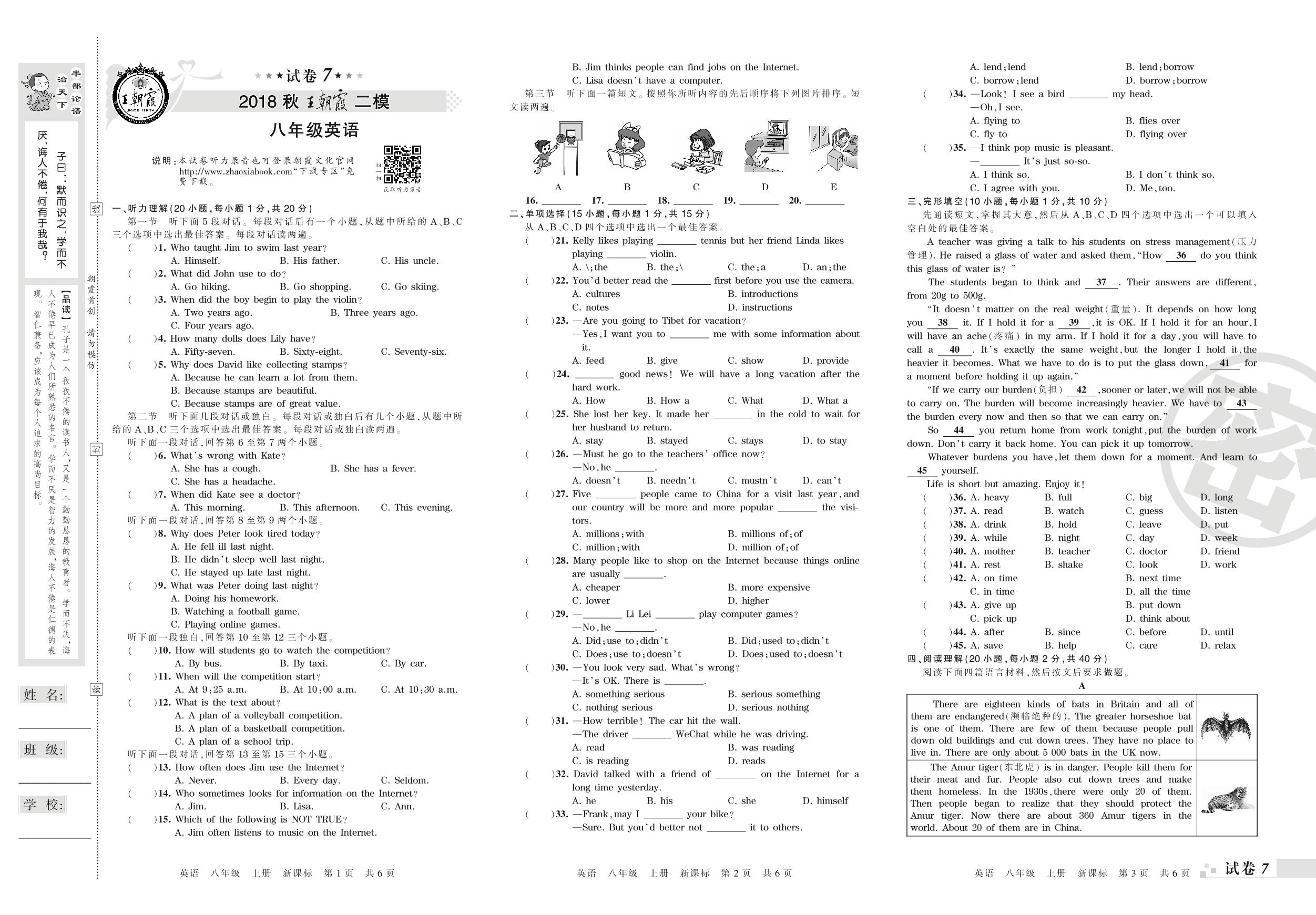 王朝霞期末模拟卷八年级上册英语(新课版)