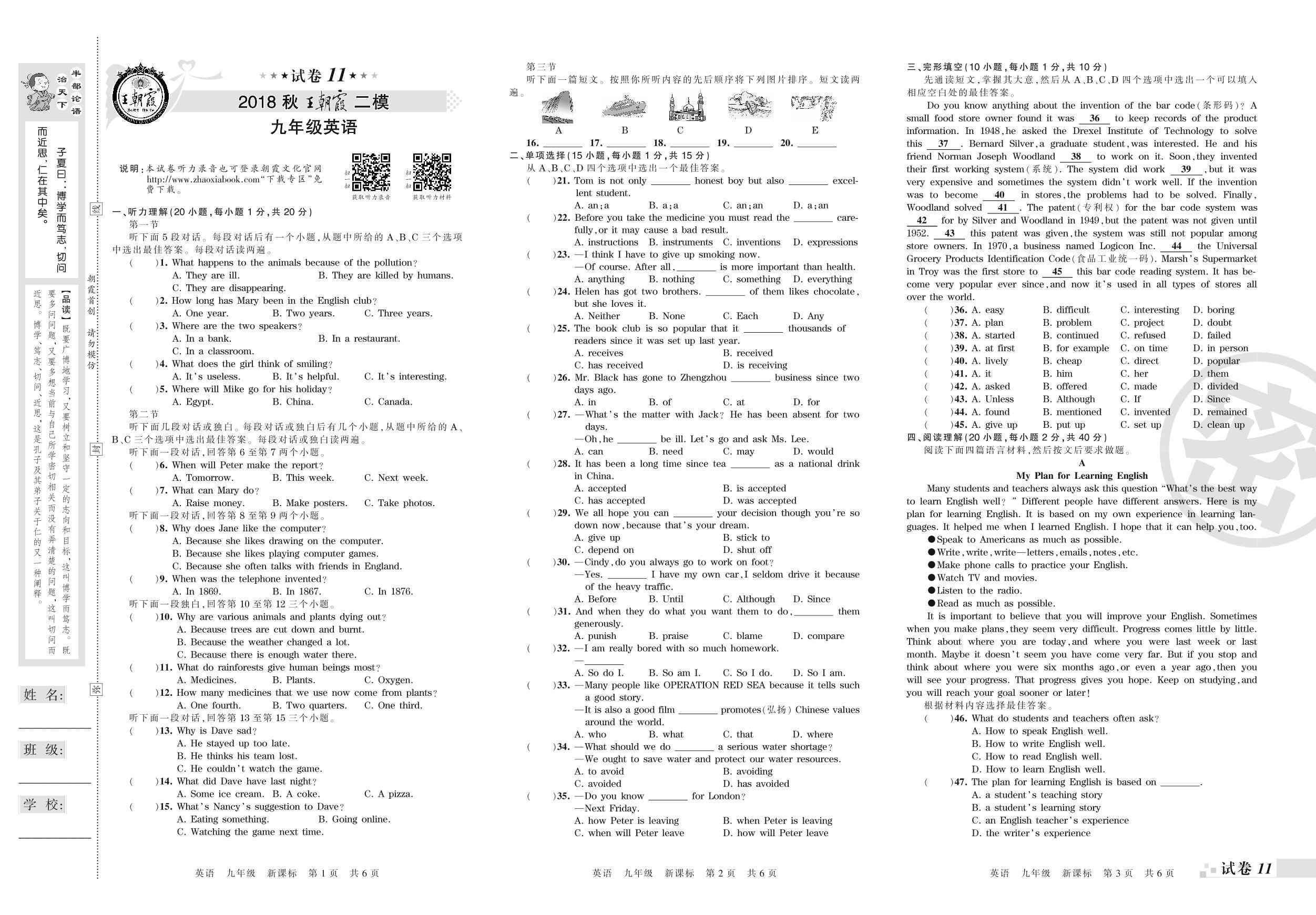 王朝霞期末模拟卷九年级上册英语(新课版)