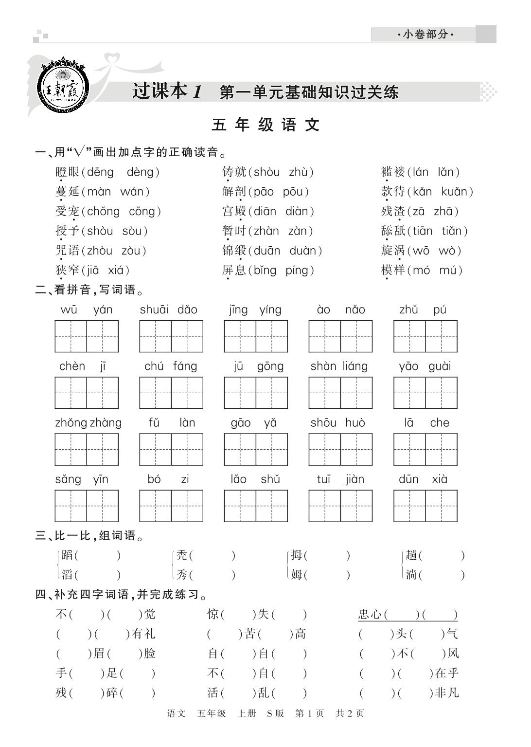 五年级语文S版上册过课本