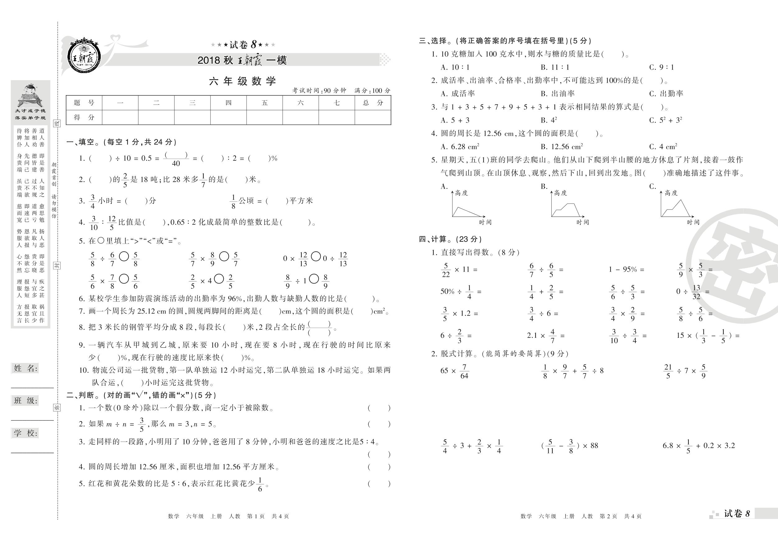 王朝霞期末模拟卷六年级上册数学(人教版)_R211231141448852【8】