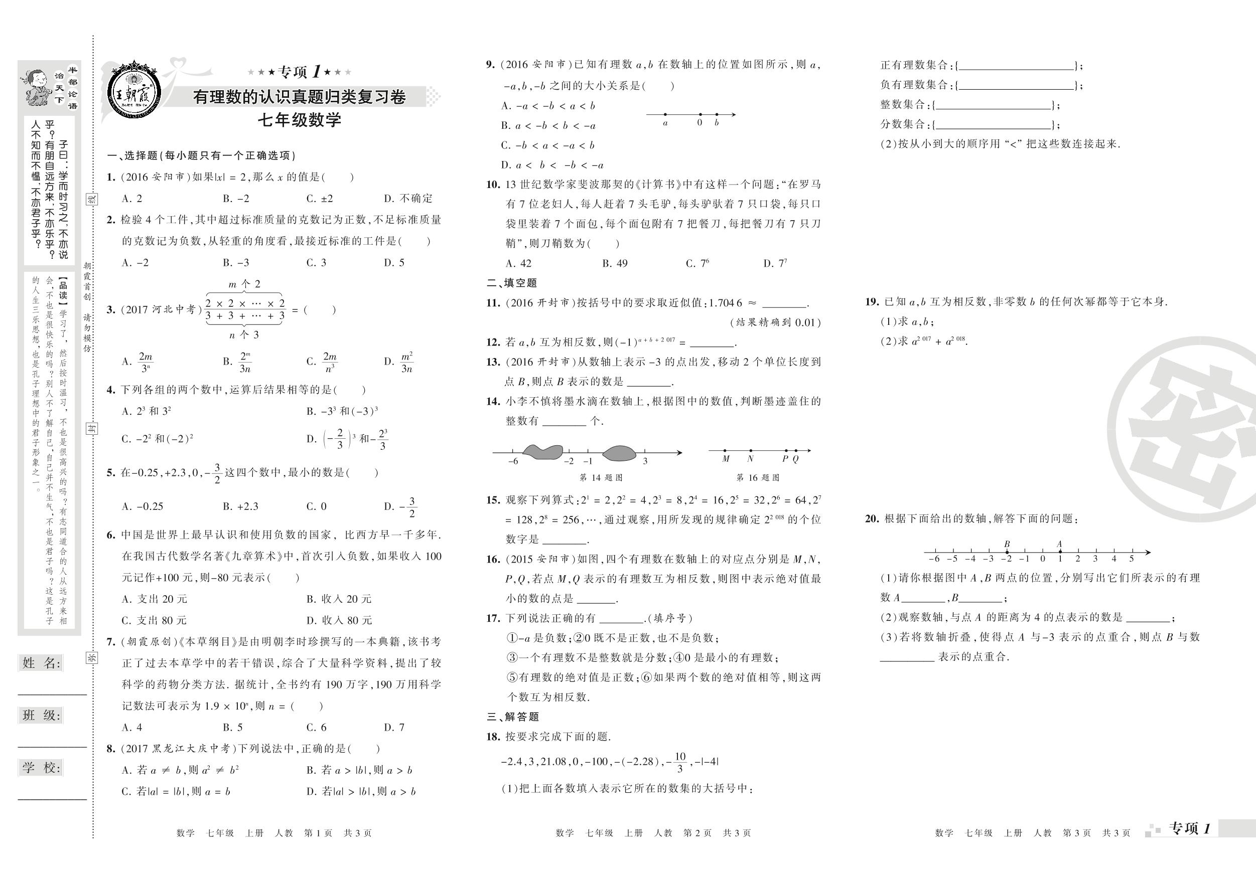 王朝霞期末专项卷——有理数的认识、有理数的运算真题归类复习卷七年级上册数学(人教版)【0】