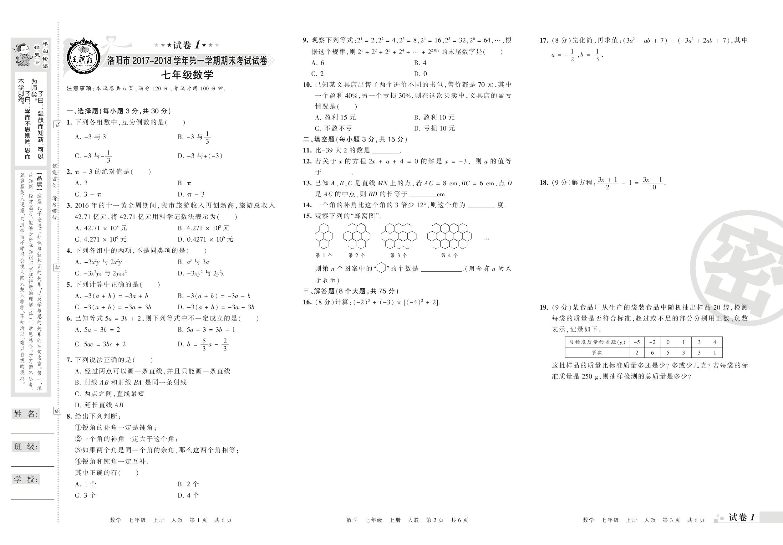 2017-2018学年第一学期洛阳市七年级数学试卷(人教版)_R211231142835533【1】