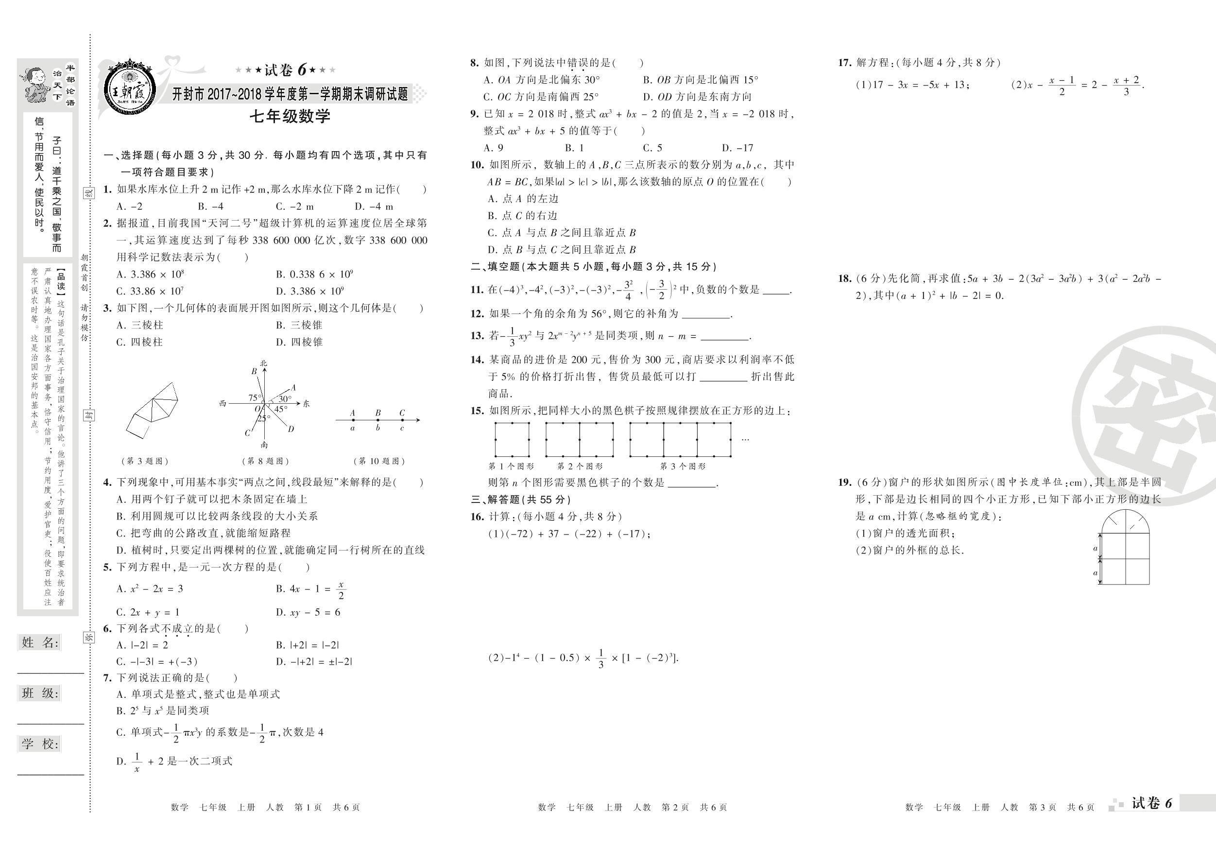 2017-2018学年第一学期开封市七年级数学试卷(人教版)【6】