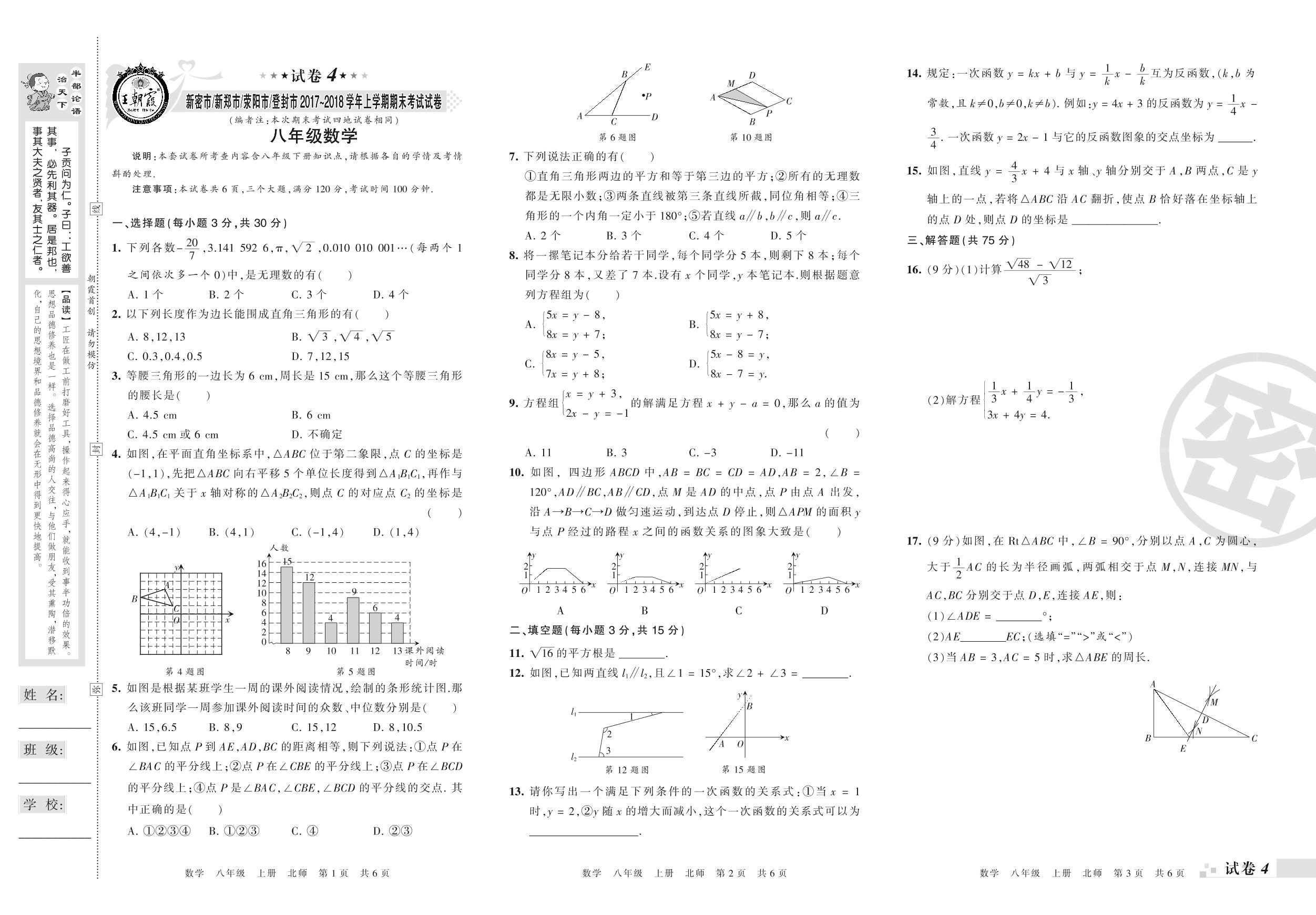 2017-2018学年第一学期新密市、新郑市、荥阳市、登封市八年级数学试卷(北师版)【4】