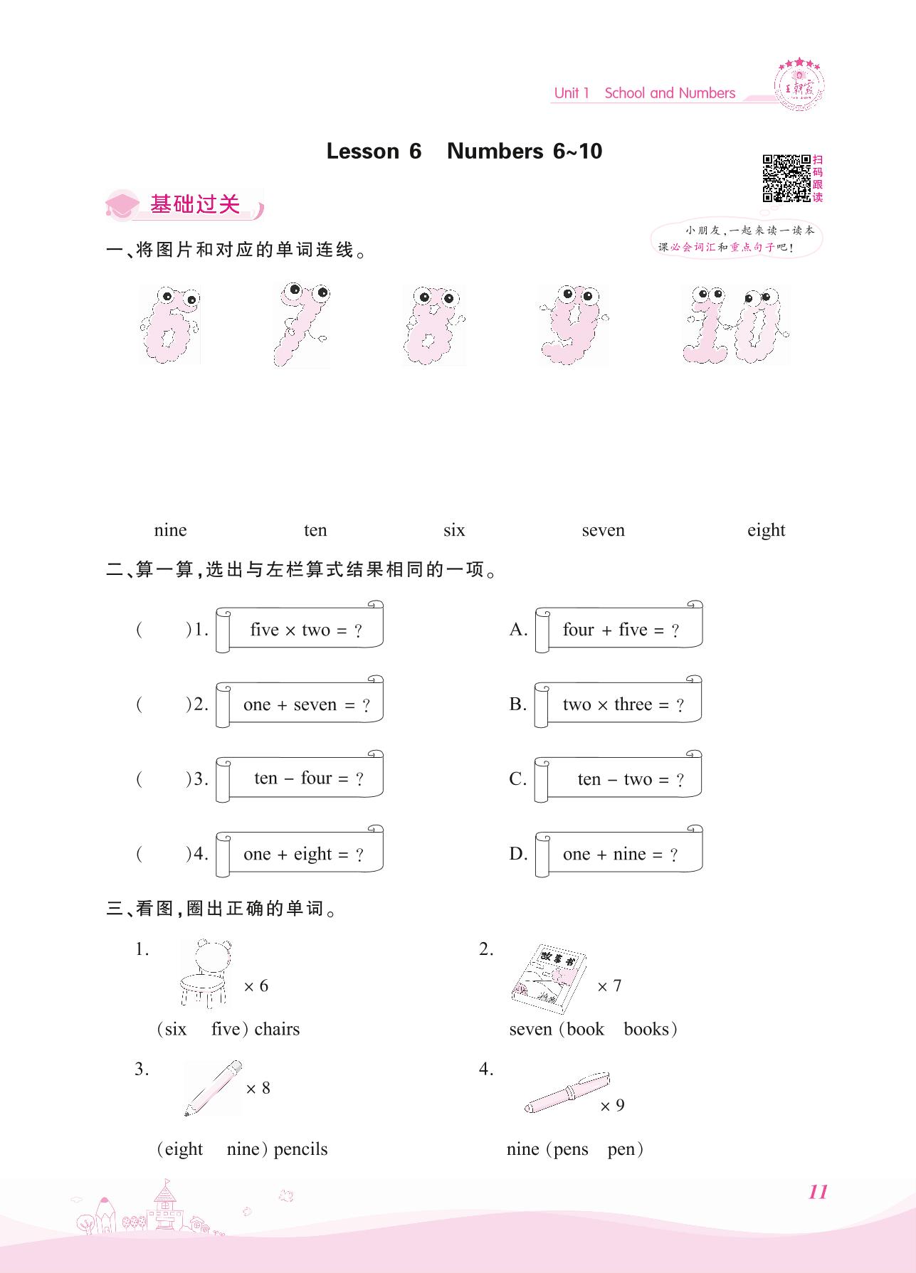 2021上册三年级英语冀教版 Unit 1—Lesson 6 Numbers 6~10