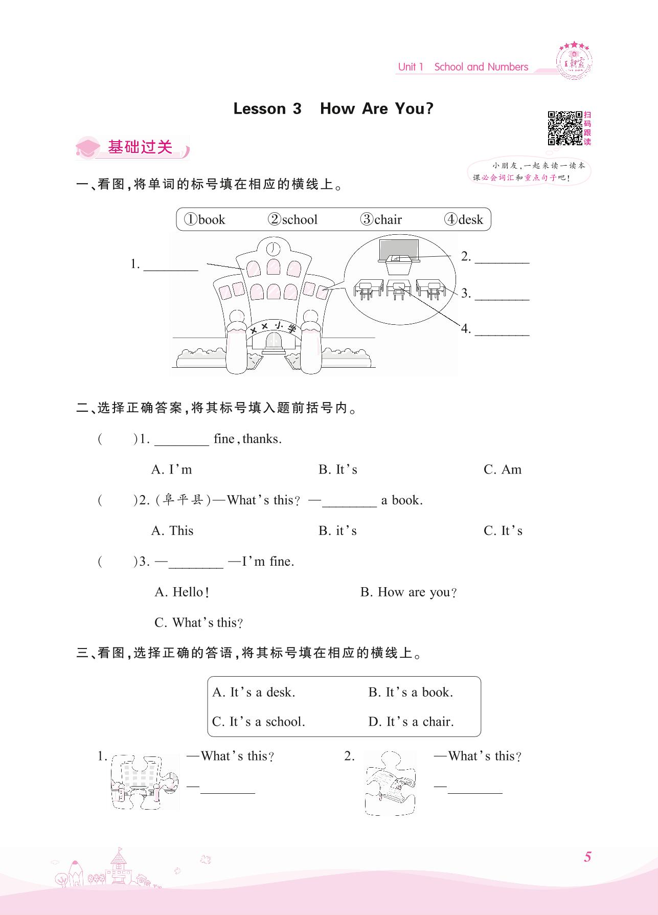 2021上册三年级英语冀教版 Unit 1—Lesson 3 How Are You?