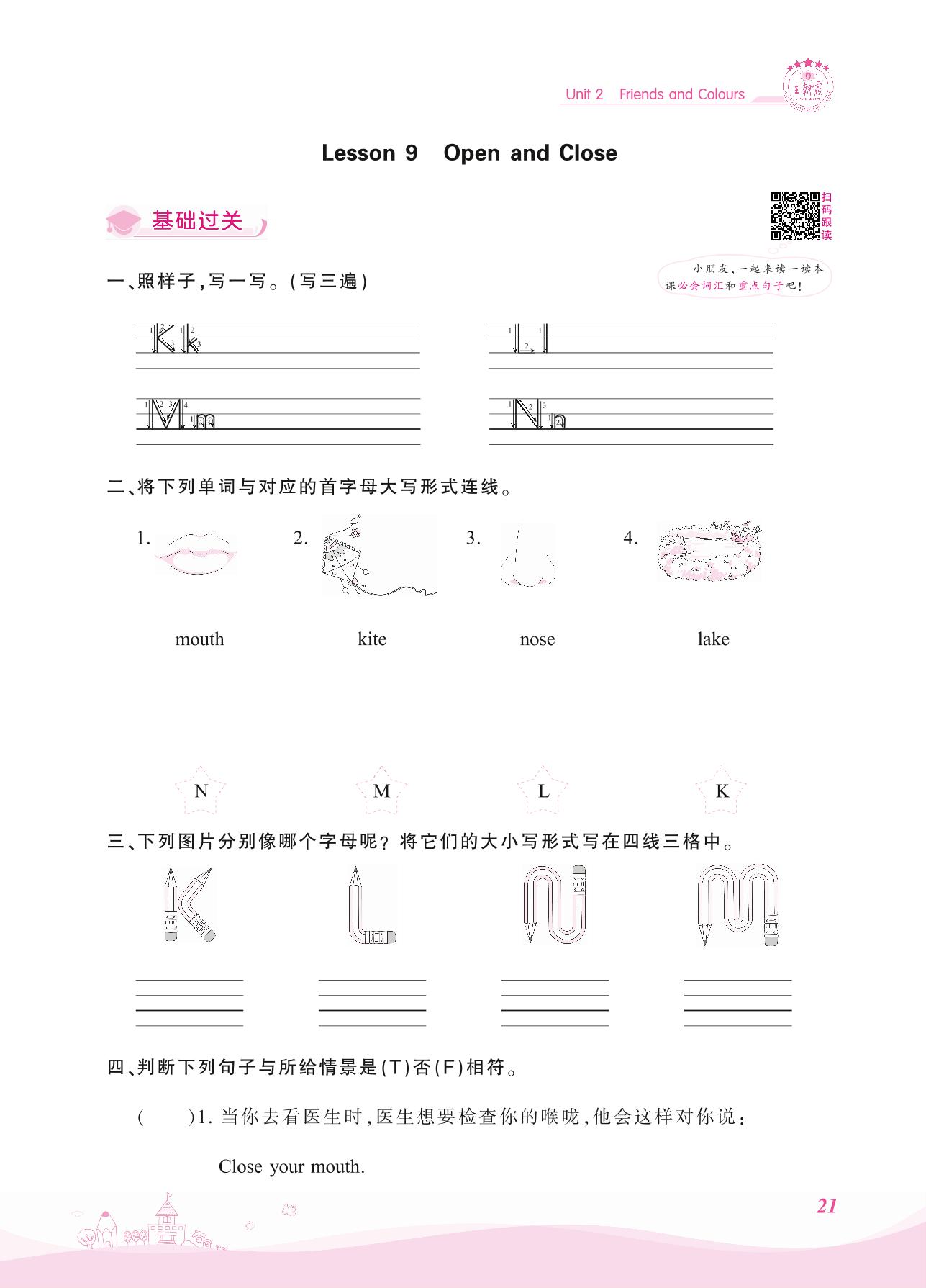 2021上册三年级英语冀教版 Unit 2—Lesson 9 Open and Close