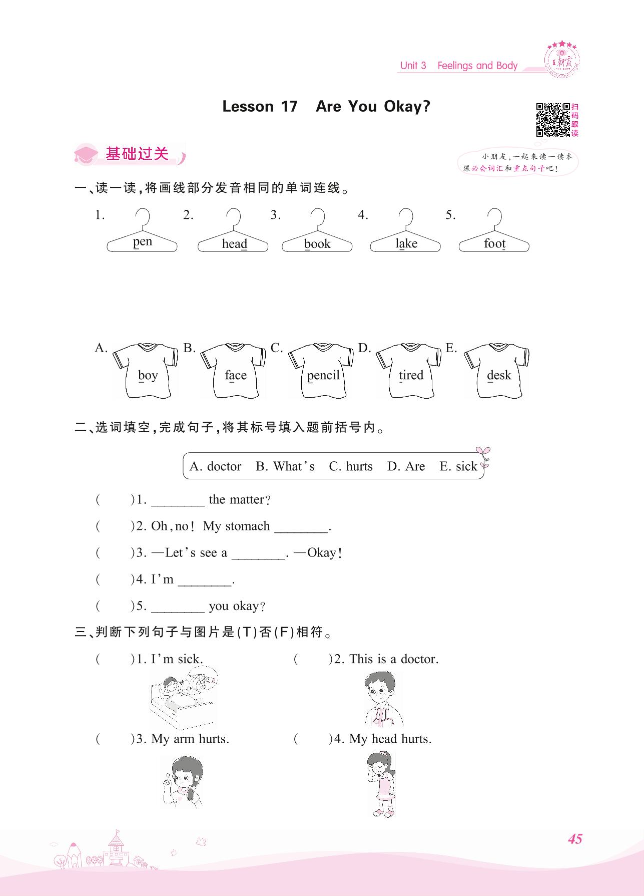 2021上册三年级英语冀教版 Unit 3—Lesson 17 Are You Okay?