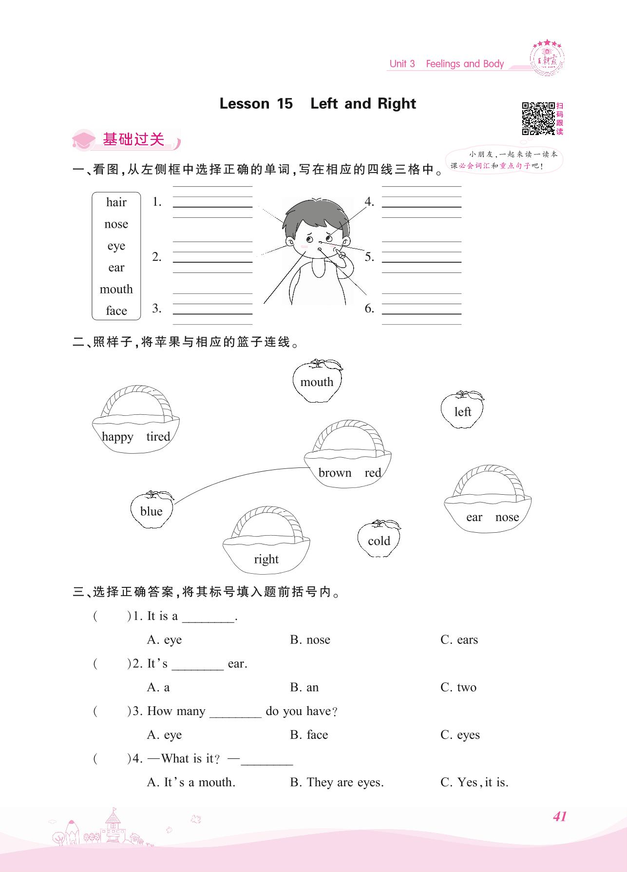 2021上册三年级英语冀教版 Unit 3—Lesson 15 Left and Right