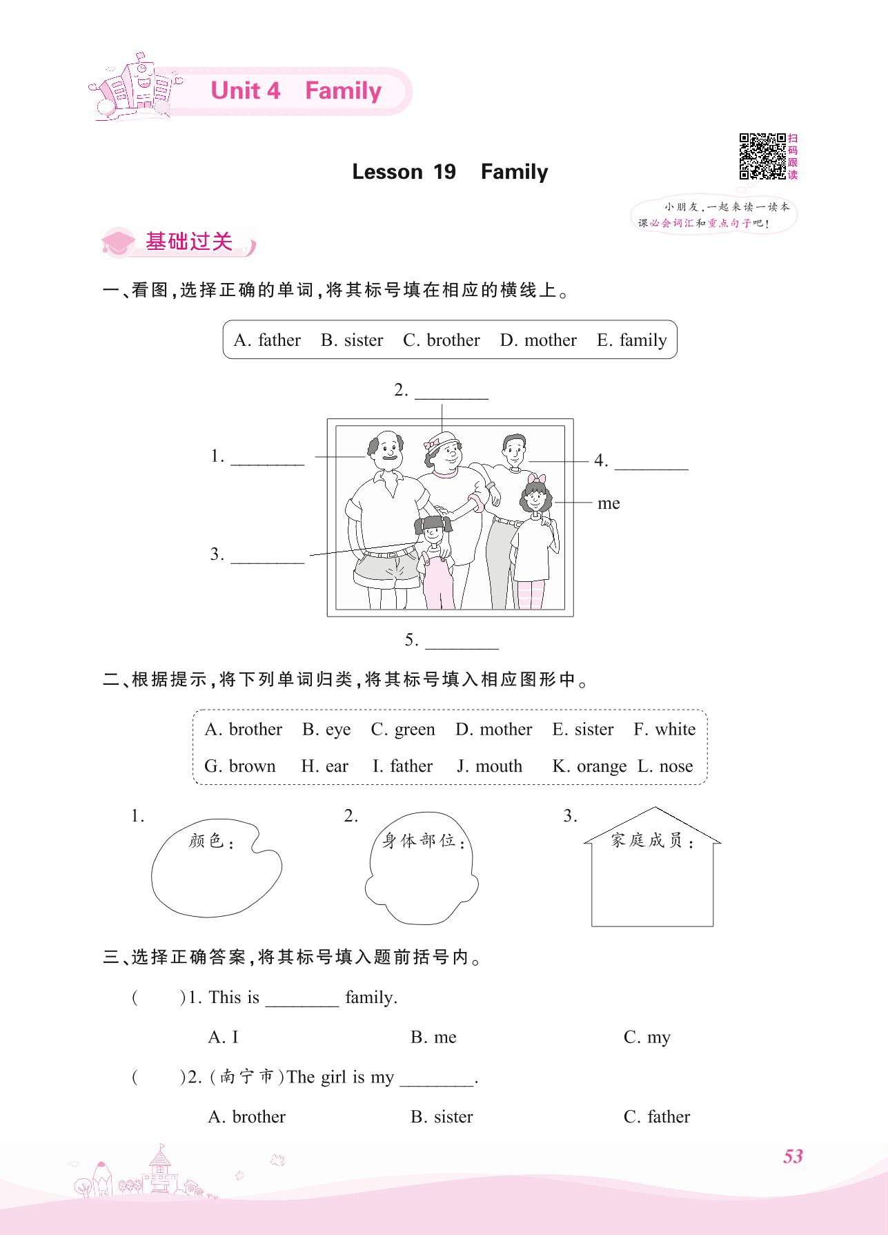 2021上册三年级英语冀教版 Unit 4—Lesson 19 Family