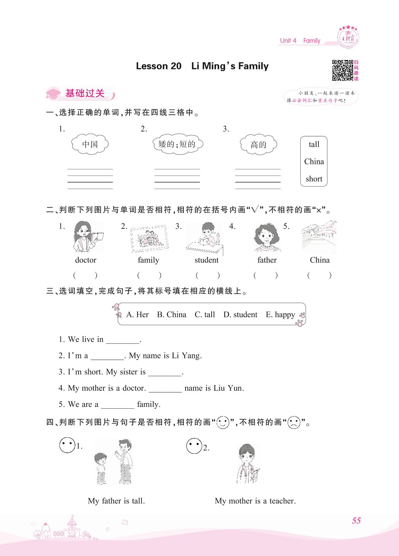 2021上册三年级英语冀教版 Unit 4—Lesson 20 Li Ming’s Family