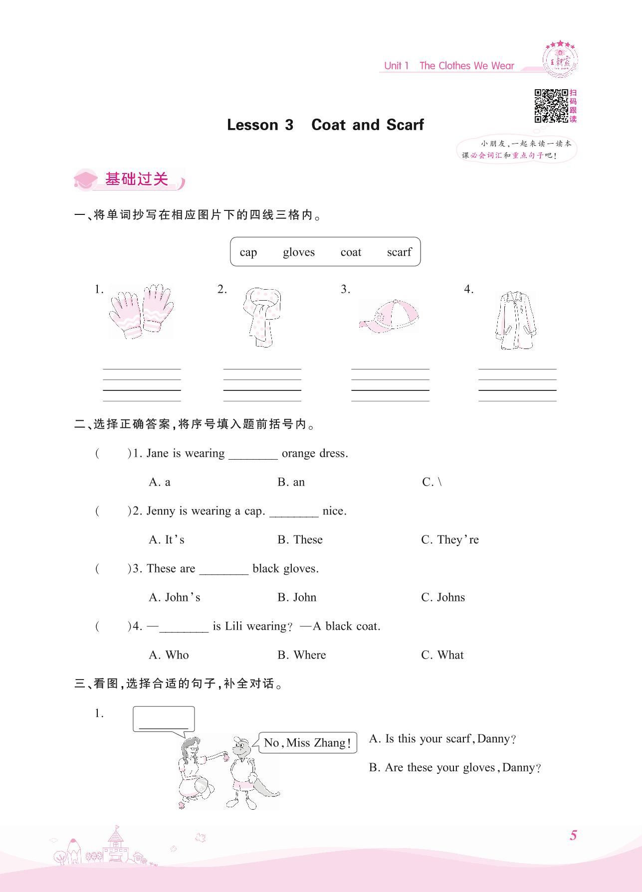 2021上册四年级英语冀教版 Unit 1—Lesson 3 Coat and Scarf