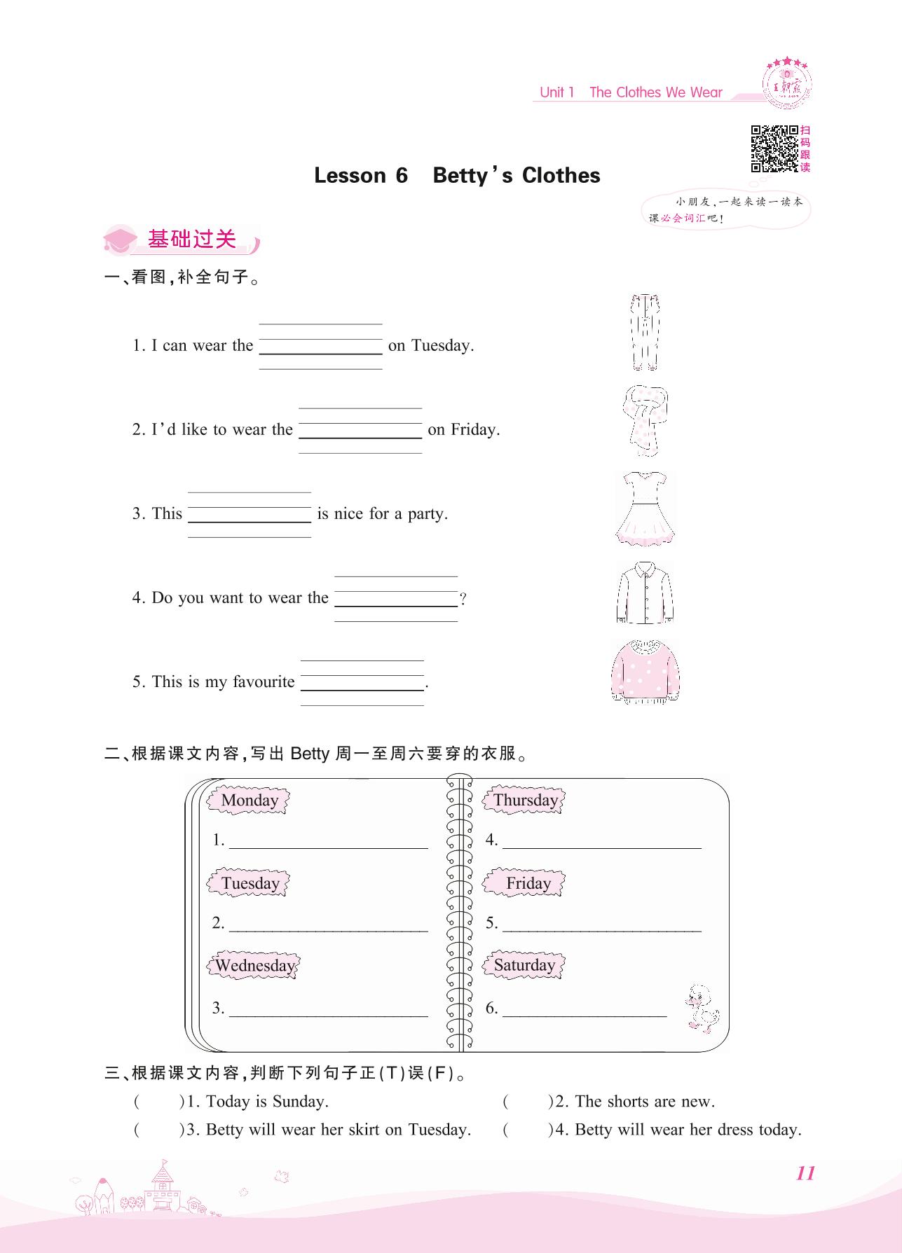 2021上册四年级英语冀教版 Unit 1—Lesson 6 Betty’s Clothes