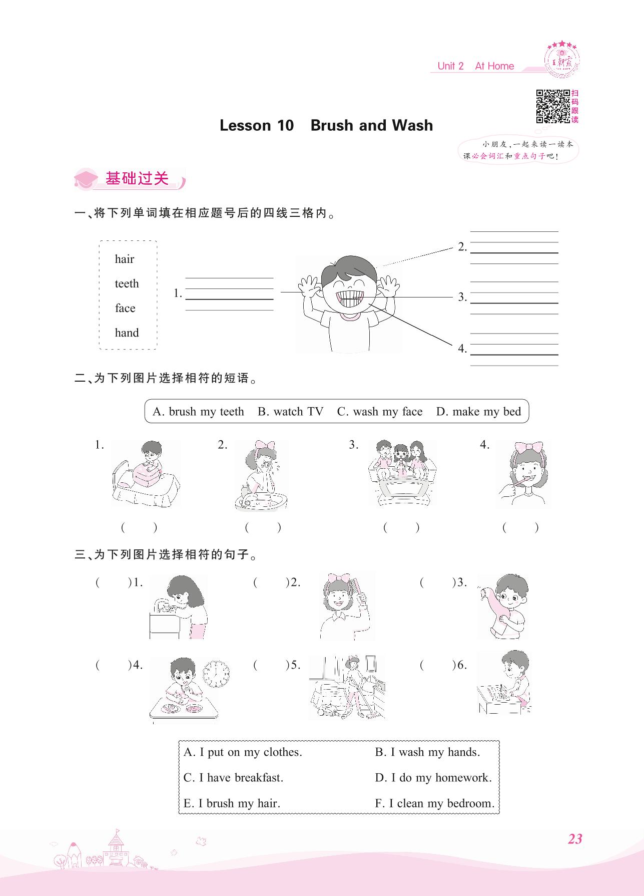 2021上册四年级英语冀教版 Unit 2—Lesson 10 Brush and Wash