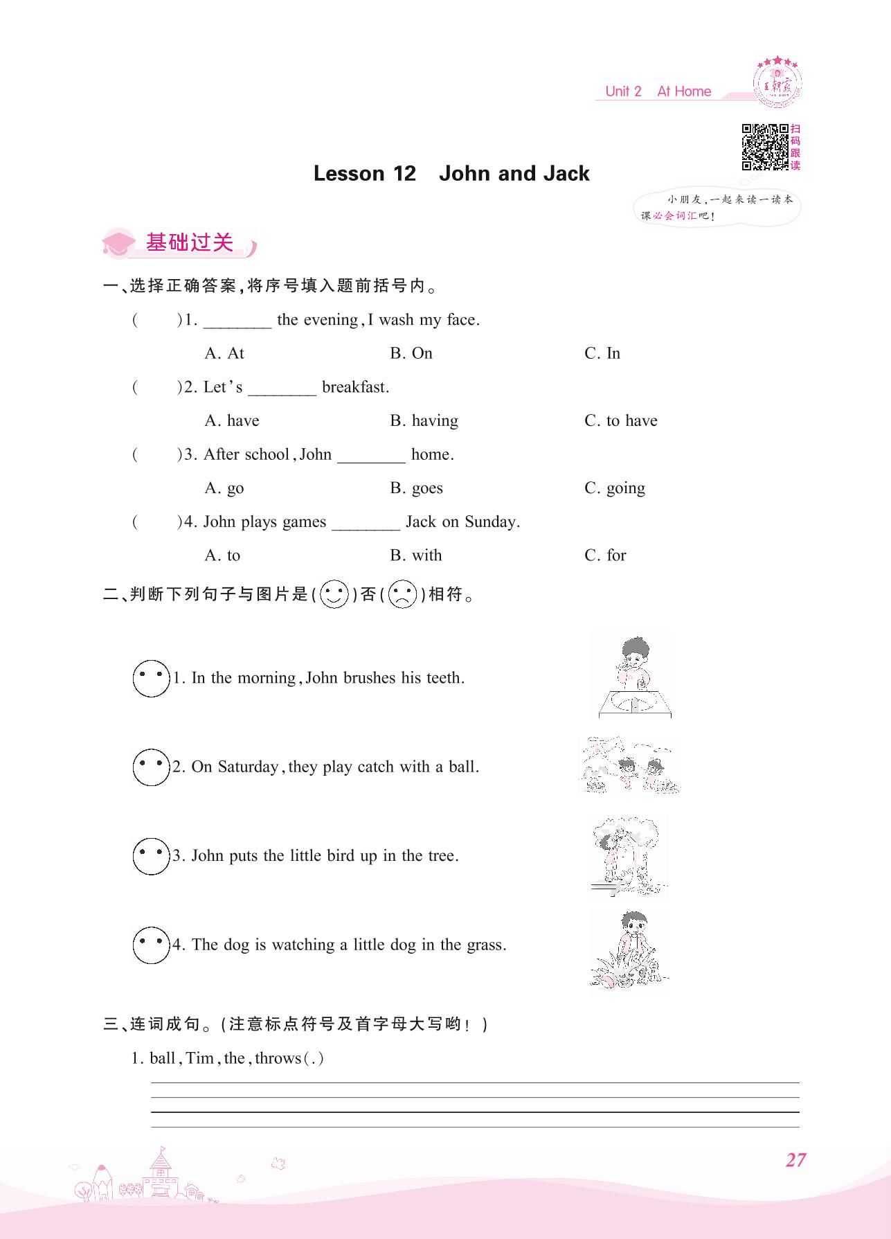 2021上册四年级英语冀教版 Unit 2—Lesson 12 John and Jack