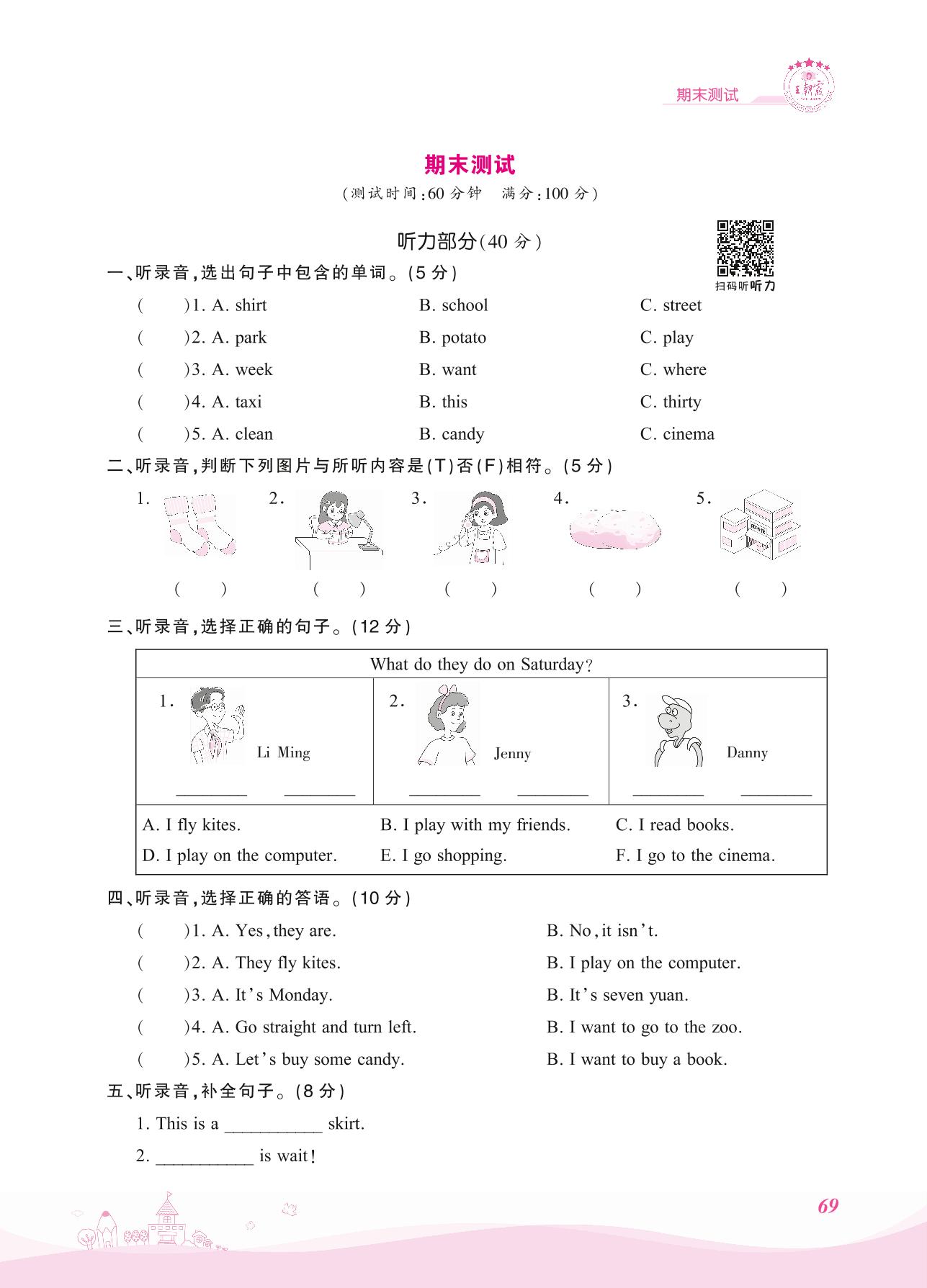 四年级英语冀教版上册期末卷
