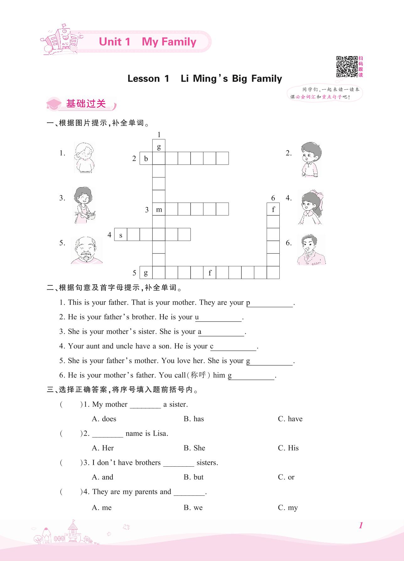 2021上册五年级英语冀教版 Unit 1—Lesson 1 Li Ming’s Big Family