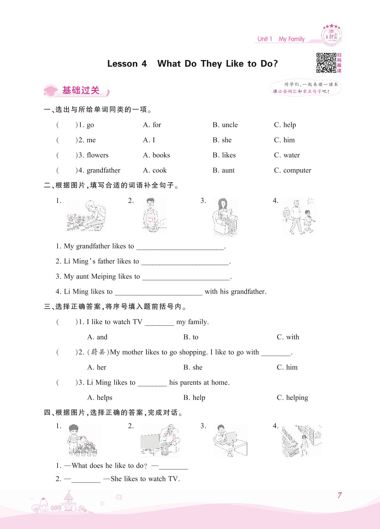 2021上册五年级英语冀教版 Unit 1—Lesson 4 What Do They Like to Do?