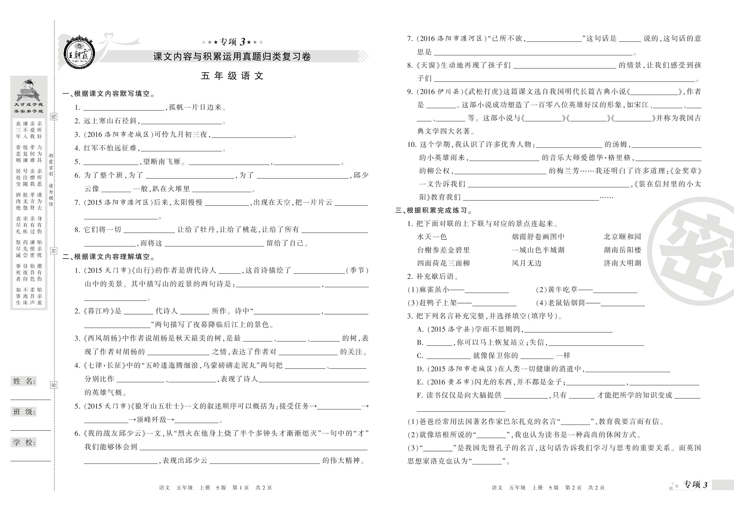 王朝霞期末专项卷——课文内容与积累运用、课内阅读与写作真题归类复习五年级上册语文(S版)【0】