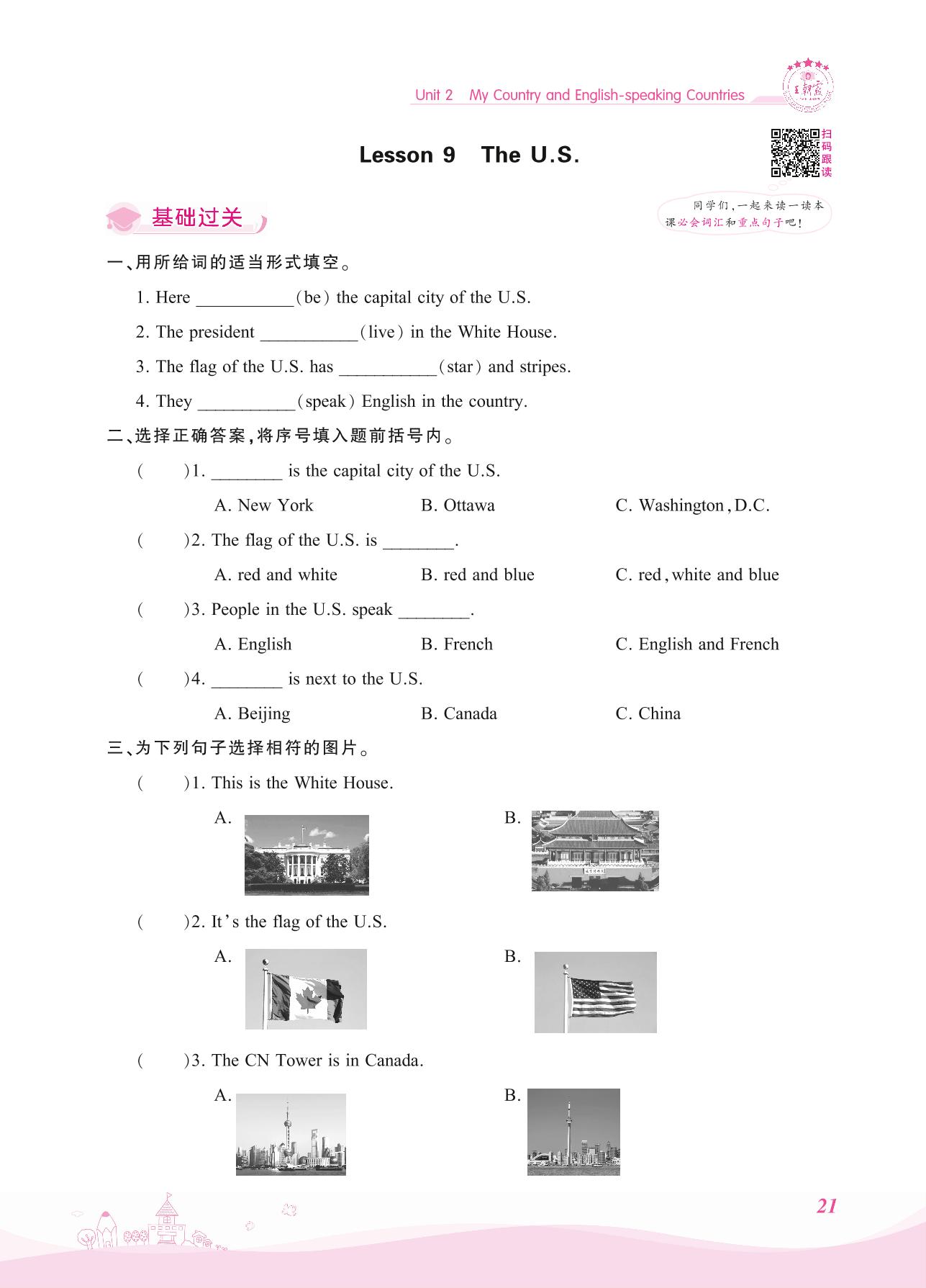 2021上册五年级英语冀教版 Unit 2—Lesson 9 The U.S.