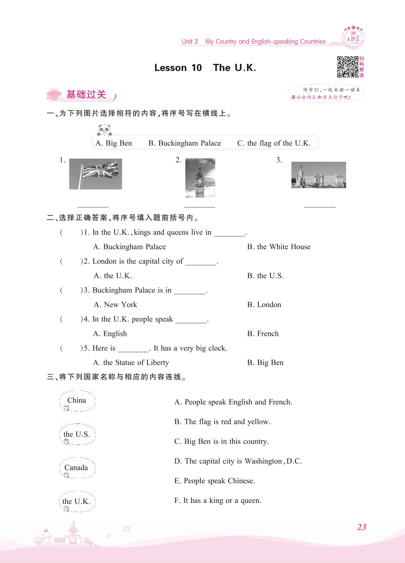 2021上册五年级英语冀教版 Unit 2—Lesson 10 The U.K.