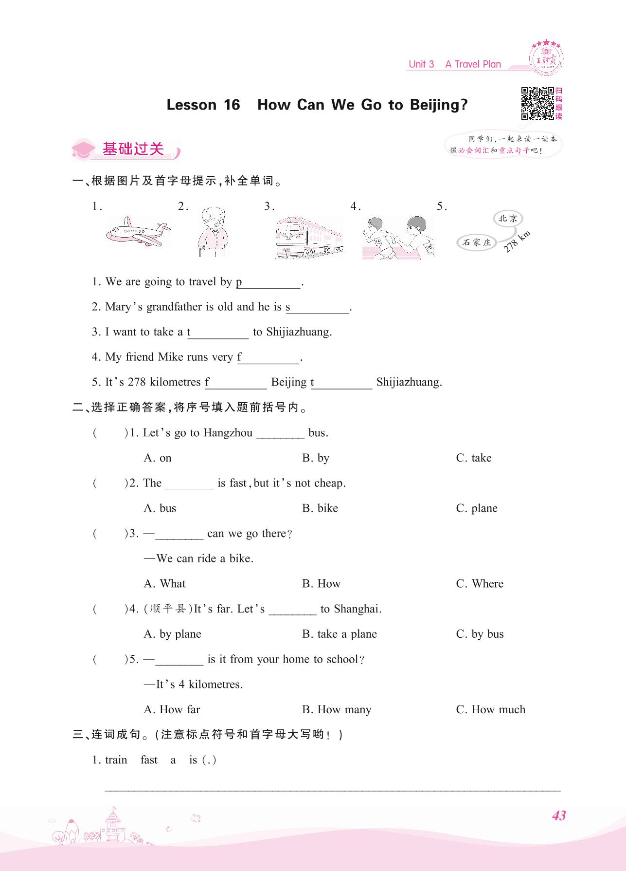 2021上册五年级英语冀教版 Unit 3—Lesson 16 How Can We Go to Beijing?