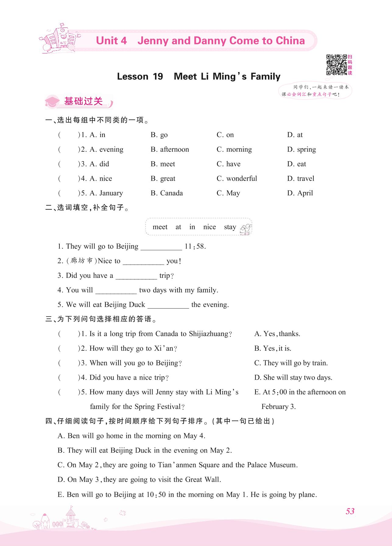 2021上册五年级英语冀教版 Unit 4—Lesson 19 Meet Li Ming’s Family