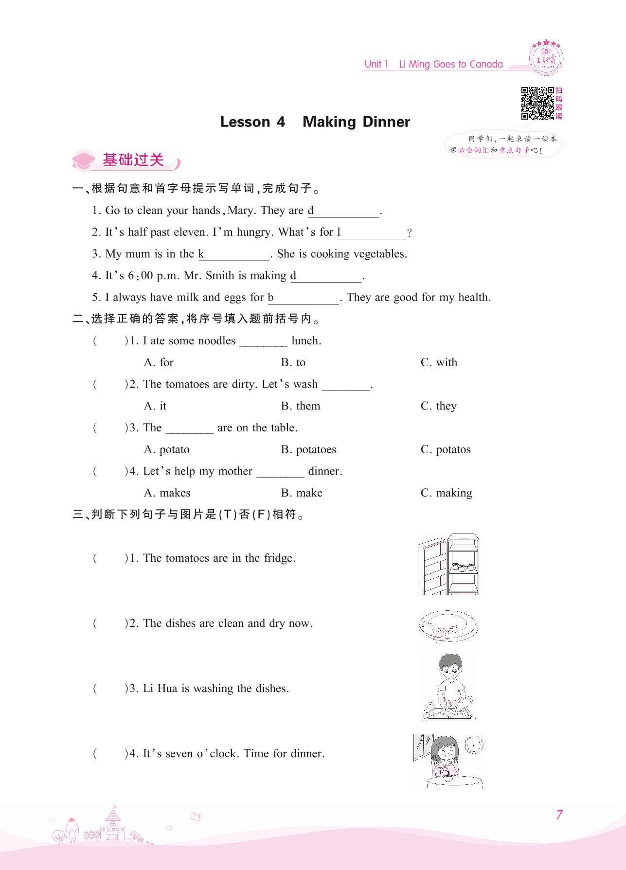 2021上册六年级英语冀教版 Unit 1—Lesson 4 Making Dinner