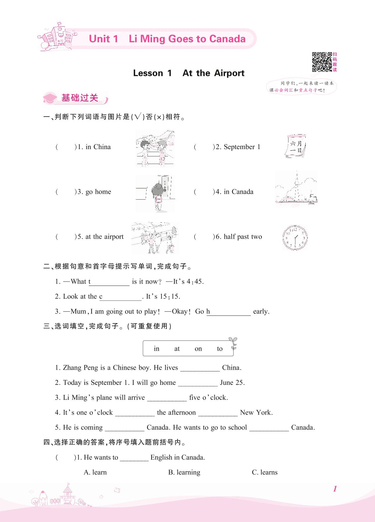 2021上册六年级英语冀教版 Unit 1—Lesson 1 At the Airport