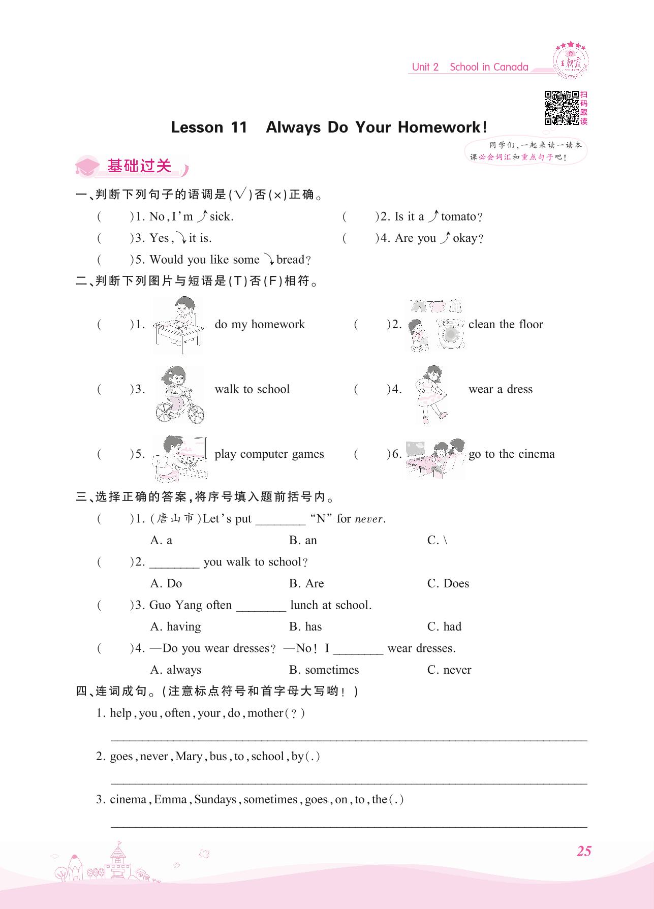 2021上册六年级英语冀教版 Unit 2—Lesson 11 Always Do Your Homework!