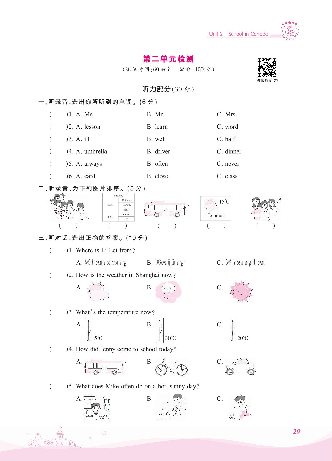 六年级英语冀教版上册单元卷