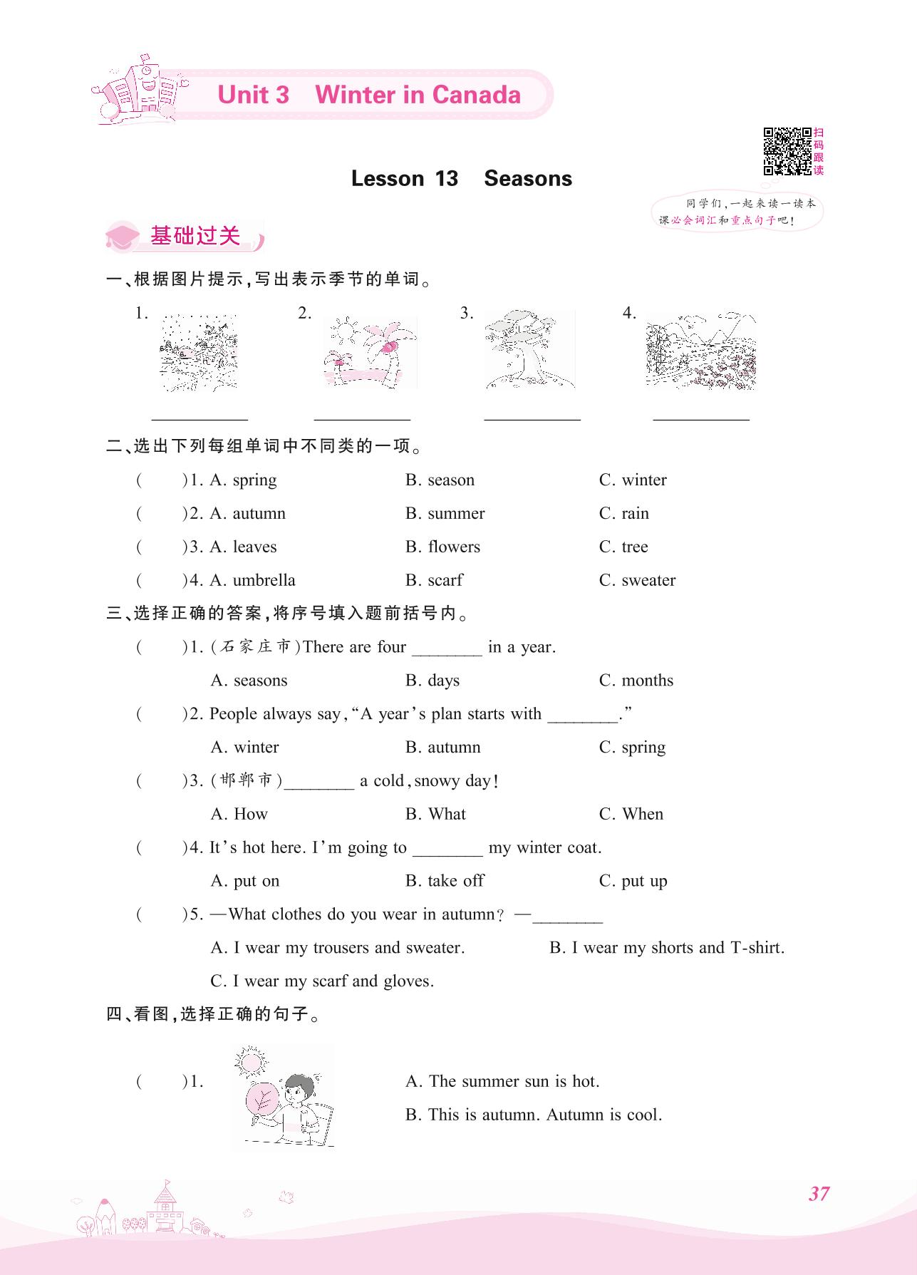 2021上册六年级英语冀教版 Unit 3—Lesson 13 Seasons