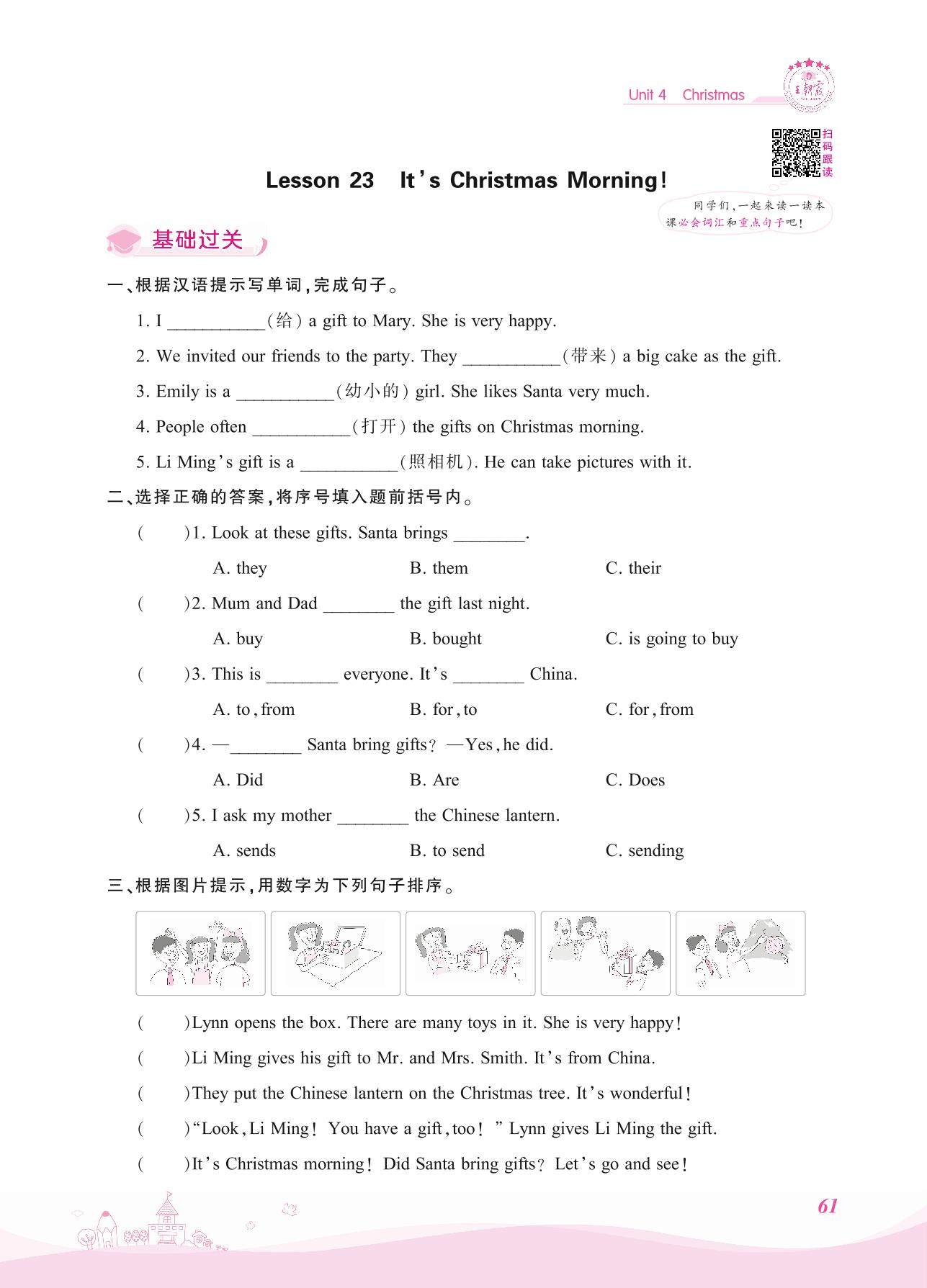 2021上册六年级英语冀教版 Unit 4—Lesson 23 It’s Christmas Morning!
