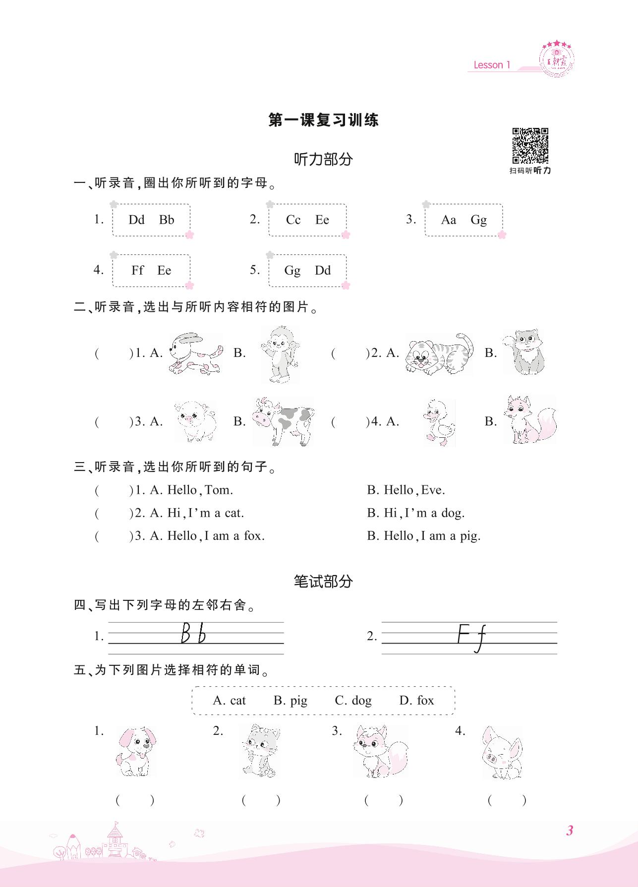 2021上册三年级英语科普版 第一课复习训练