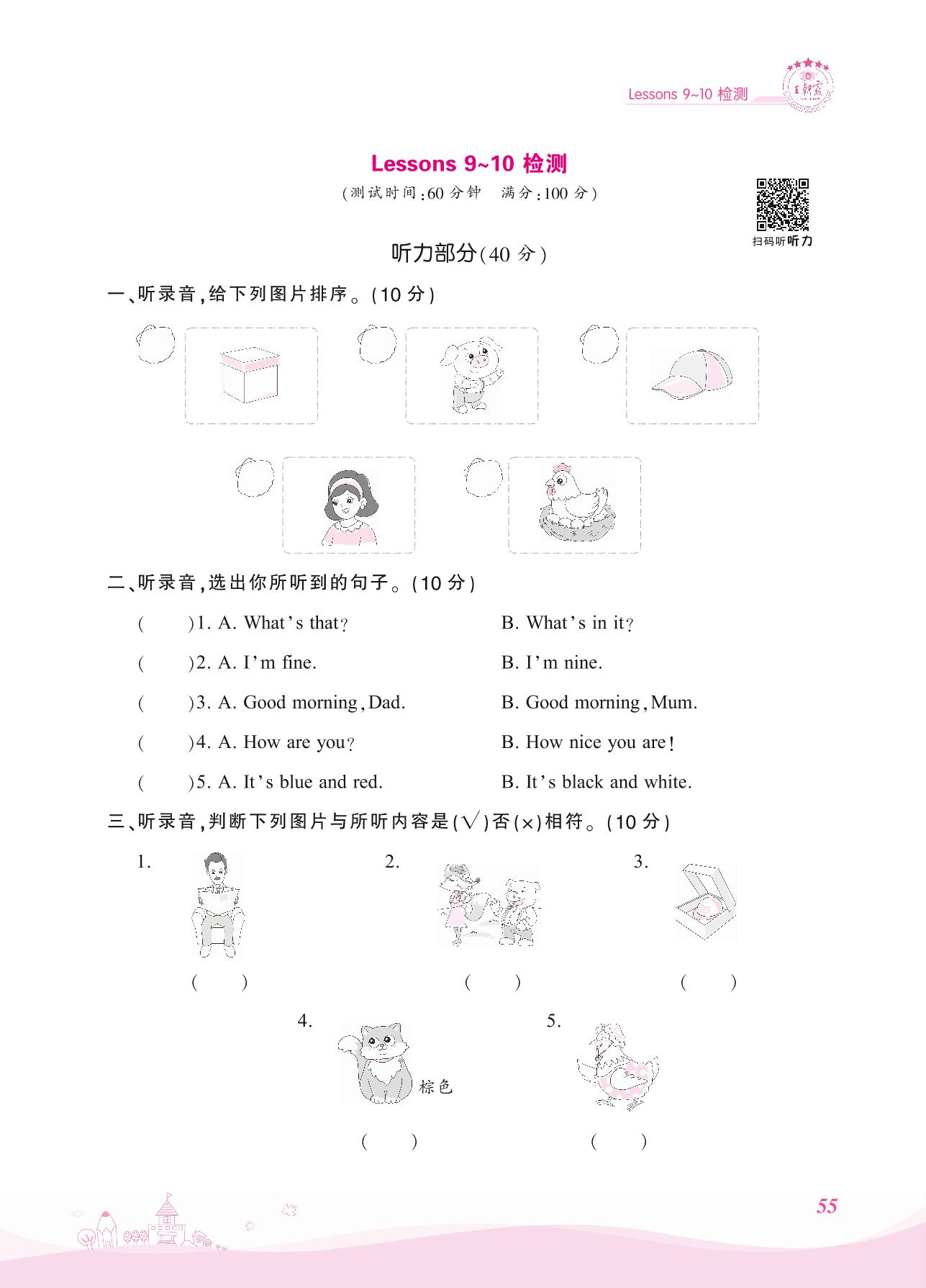 2021上册三年级英语科普版 Lessons 9~10检测