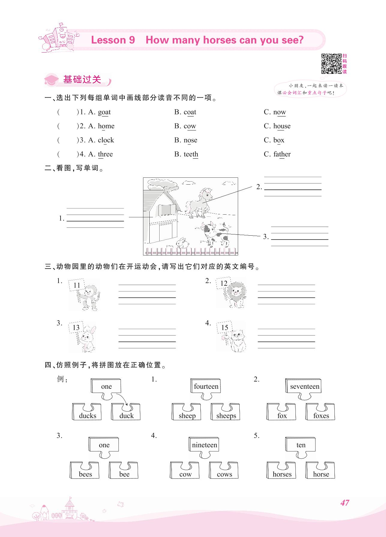 2021上册四年级英语科普版 Lesson 9—How many horses can you see?