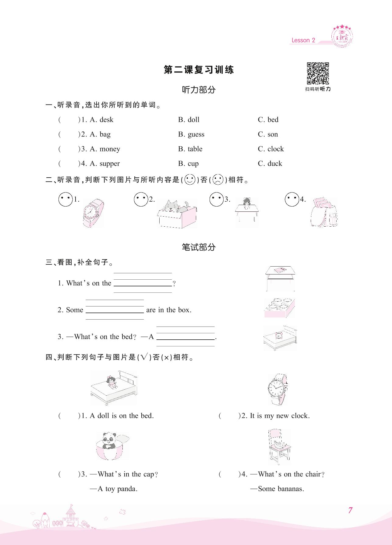 2021上册四年级英语科普版 第二课复习训练