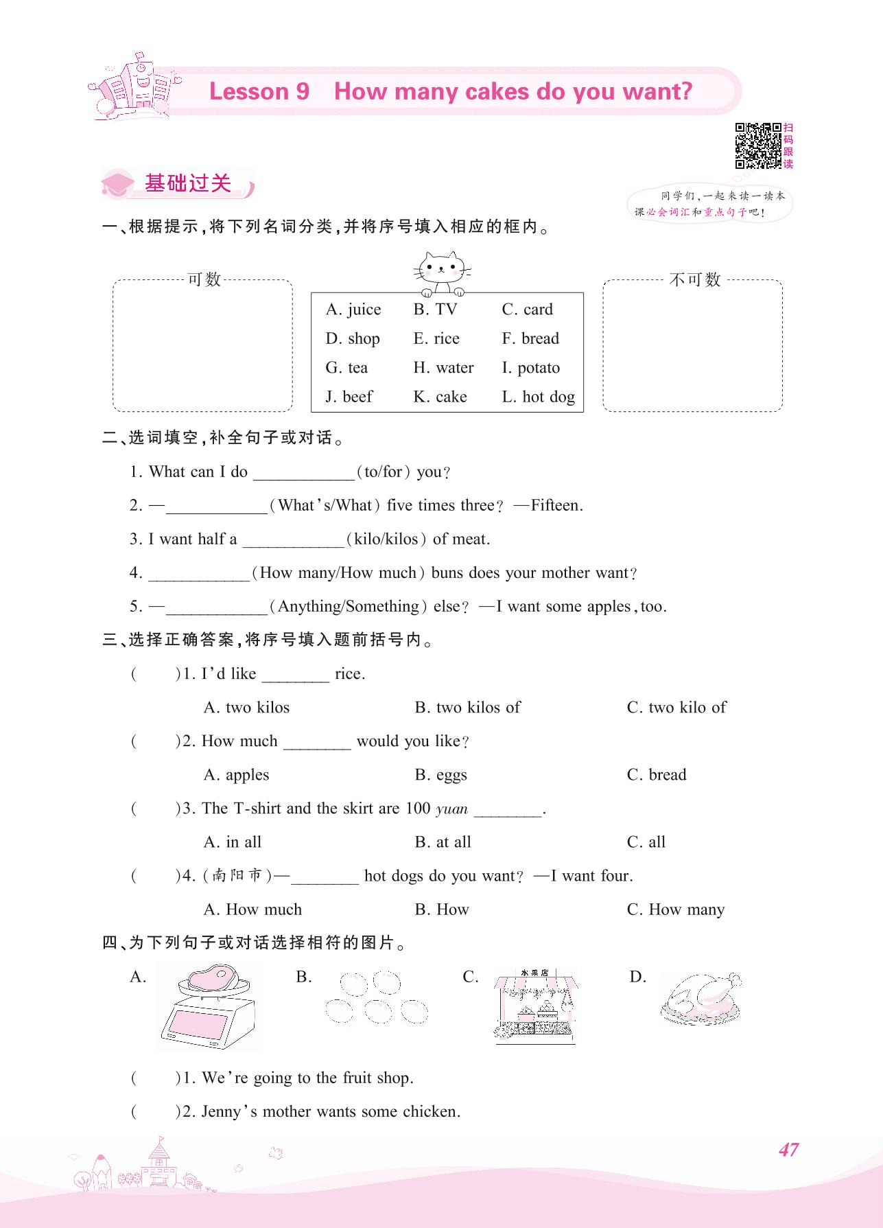 2021上册五年级英语科普版 Lesson 9—How many cakes do you want?