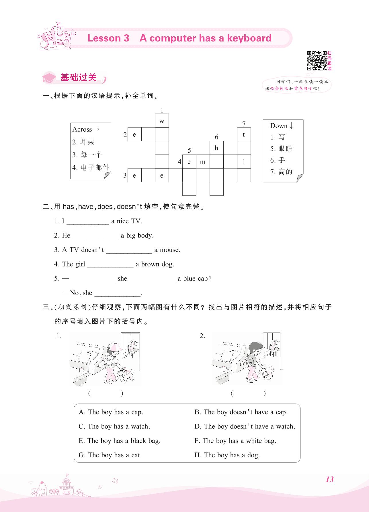 2021上册五年级英语科普版 Lesson 3—A computer has a keyboard