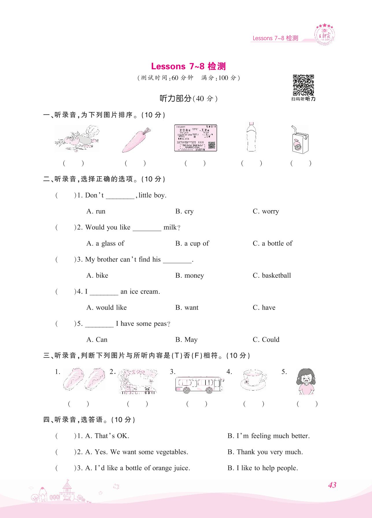 2021上册五年级英语科普版 Lessons 7~8检测