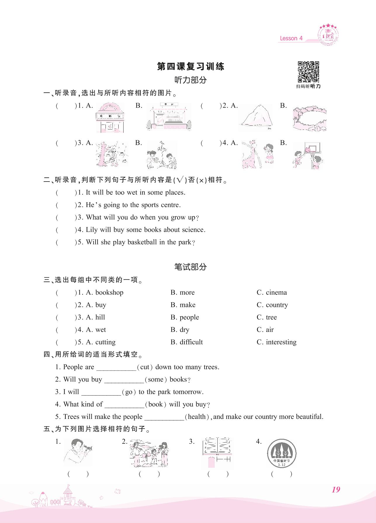 2021上册六年级英语科普版 第四课复习训练