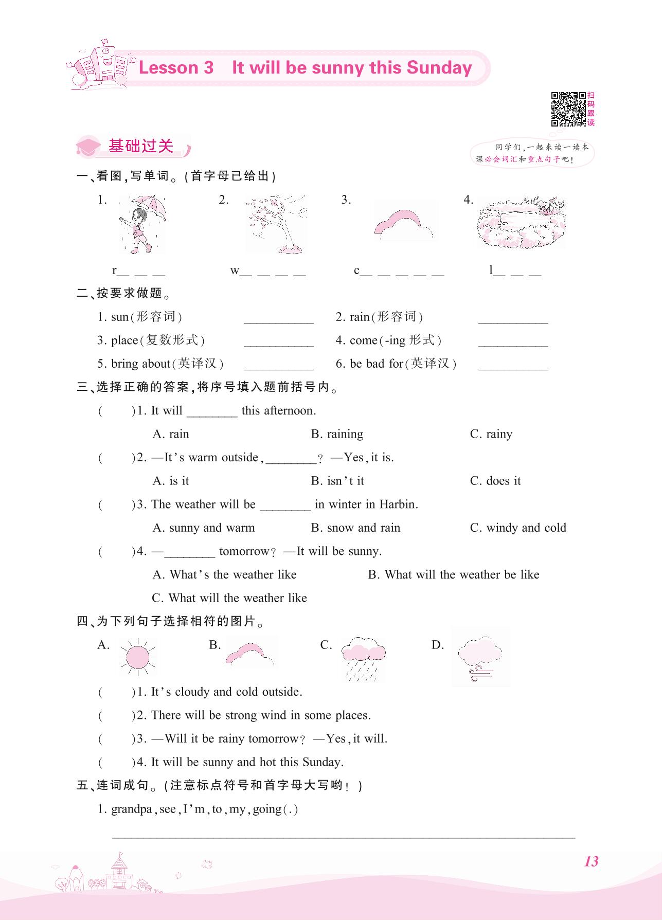 2021上册六年级英语科普版 Lesson 3—It will be sunny this Sunday